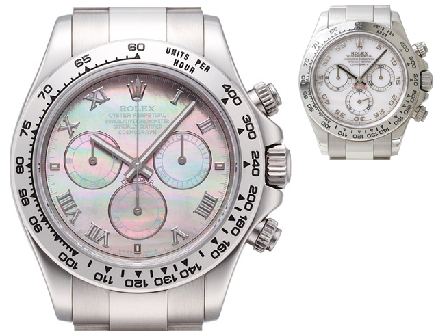 以上のデイトナが各種文字盤で画像付きで掲載してあります。