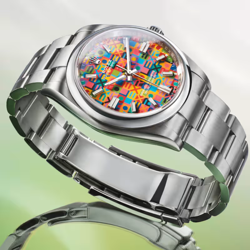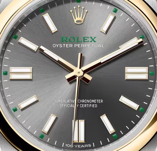 今回の新作における最大のハイライトは、オイスター誕生100周年を直接的に祝う記念モデルの登場です。サイズ展開(41mm、36mmなど)を超えて、このモデルが持つ真の価値は、その文字盤の下部に刻まれた「100 Years(1926-2026)」の特別なレタリングにあります。 この記念モデルには、初代オイスターが持っていた「実用性と信頼性」への敬意が込められています。文字盤は深く艶やかなラッカー仕上げが施され、一見するとクラシックな装いですが、光の加減で浮かび上がる記念刻印が、所有者に対してこの時計が持つ歴史的重みを静かに語りかけます。ムーブメントには最新の脱進機技術が投入され、100年前の「防水性への挑戦」が、現在は「究極の精度と耐久性への到達」へと進化したことを証明しています。