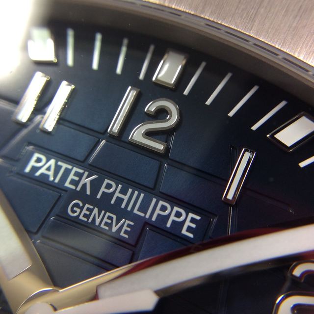 今回ご紹介するアクアノートRef.5168はケースサイズが42.2mmという新しいジャン・ボサイズの展開をしております。現行モデルのアクアノートRef.5167は40.8mmに対し、記念モデルは42.2mmとサイズが大きくなっており、さらにケースはホワイトゴールド採用しているため、迫力満点です。