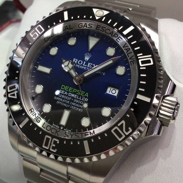 画像を見てパッとわかる変更点は、6時位置の『swiss made』表記の間に新型ディープシーは【王冠マーク】が入ったところでしょうか。