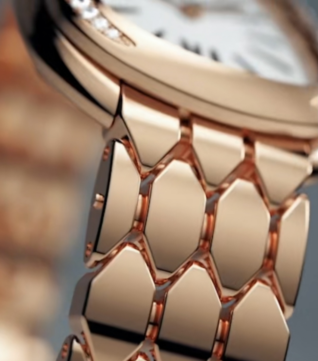 ただこの他にないヘキサゴンパターンによってウロコを表現することによってブルガリらしい色気を放つ時計へ昇華されていますね。