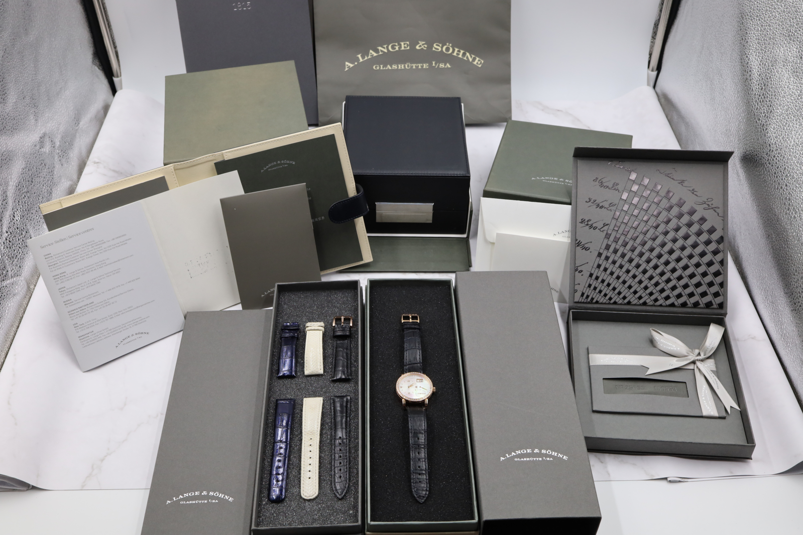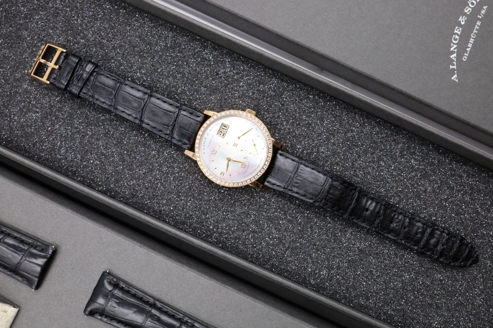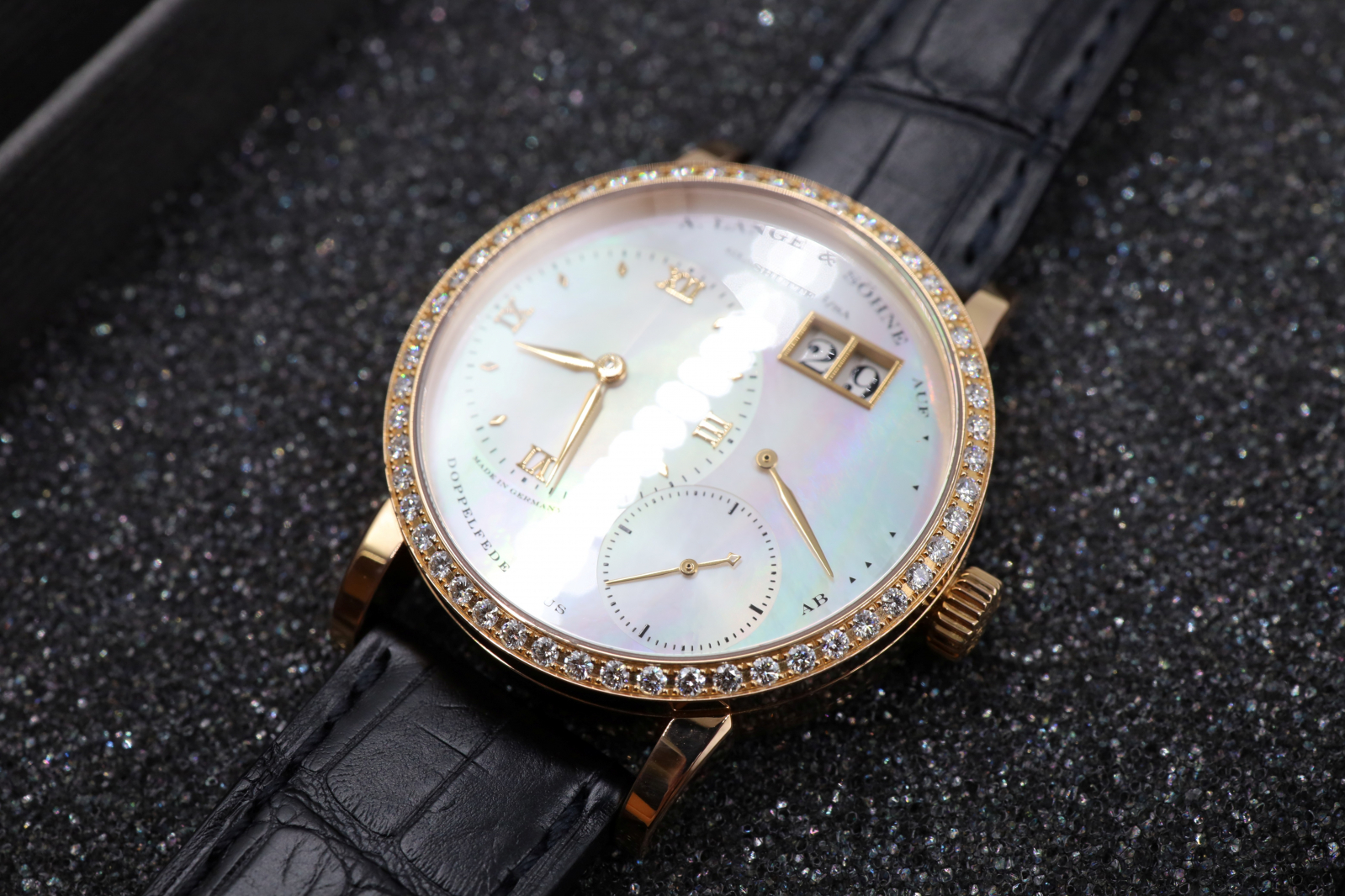 【日本に1本&最安&付属品完備&OH済み】A(未使用品に近い) ランゲ&ゾーネ リトルランゲ1 ソワレ(クライネ) Ref.813.047 ダイヤベゼル シェル文字盤