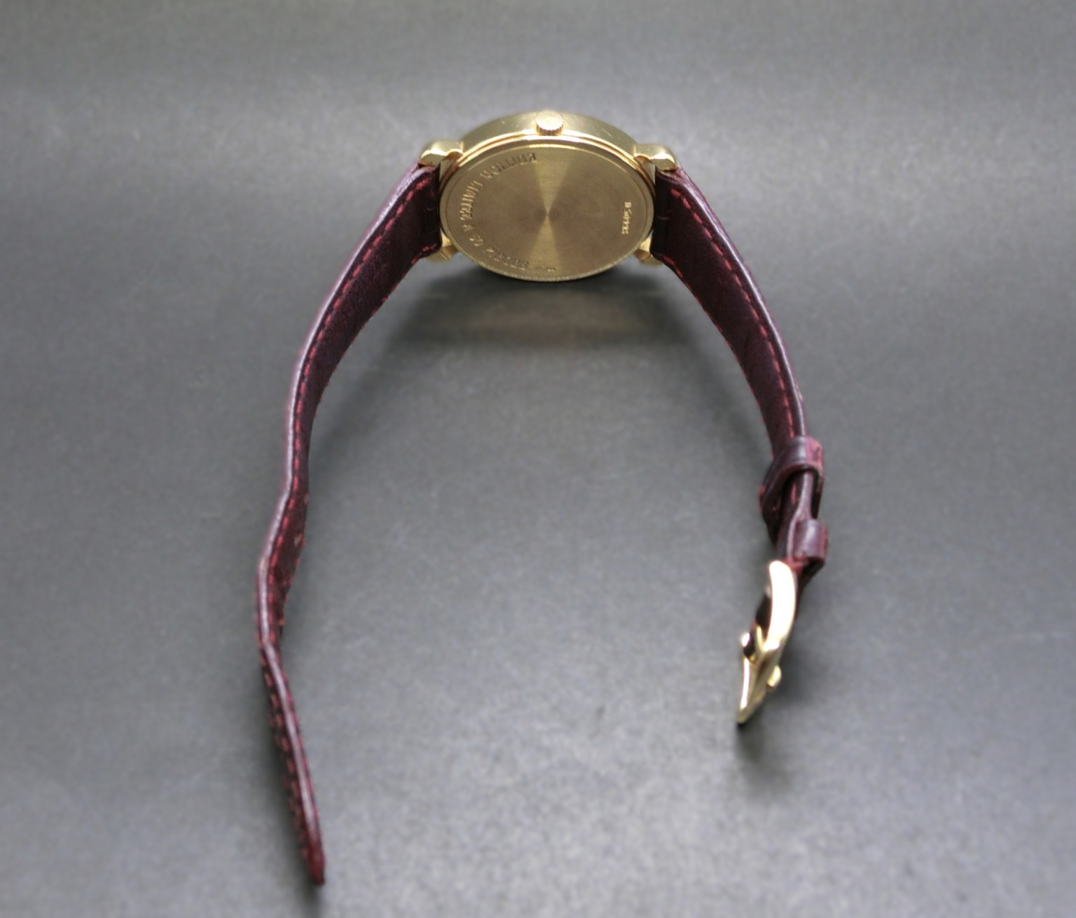 小ぶりで手元に馴染むサイズ感の、上品なドレスウォッチです。