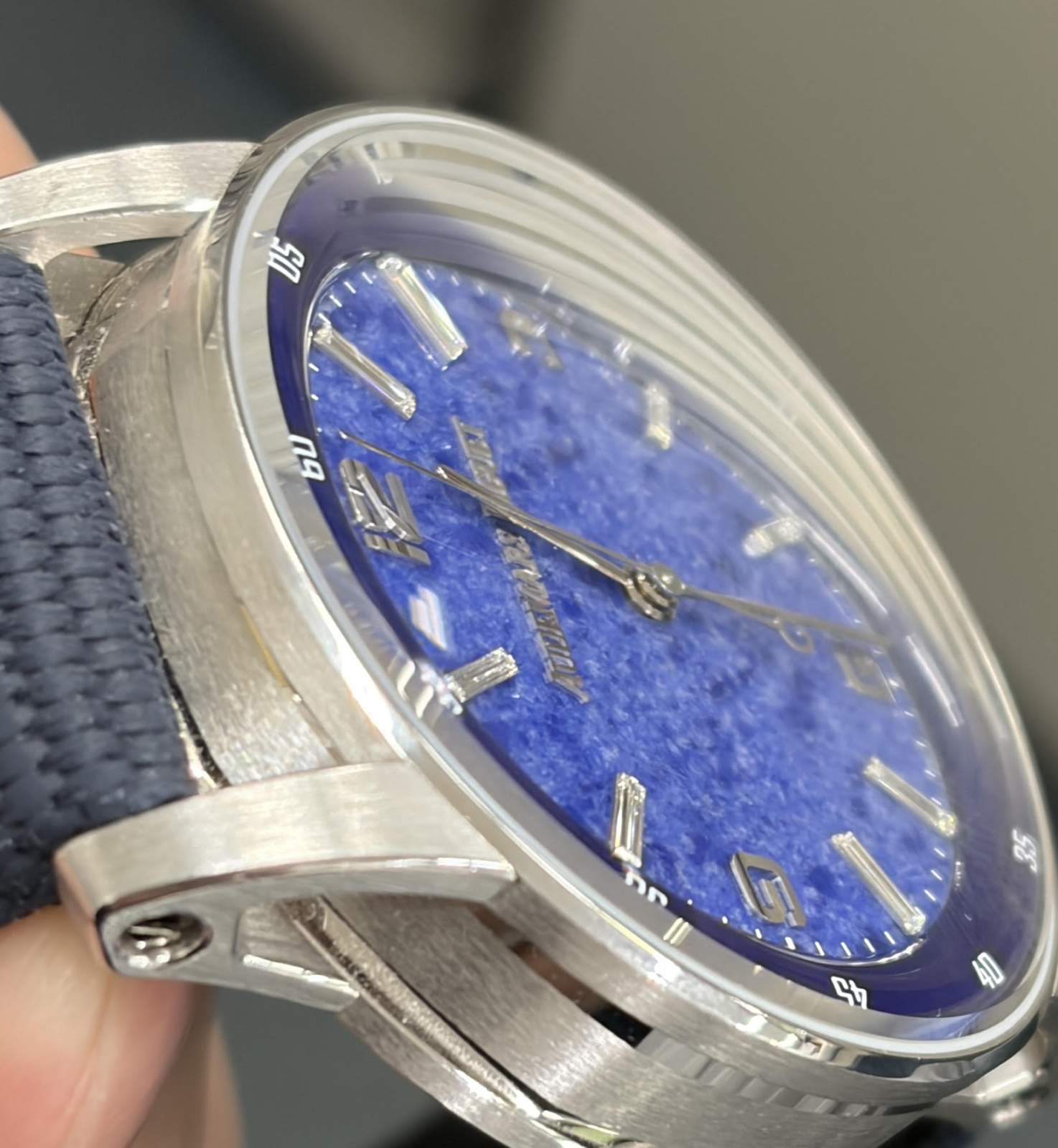 日本限定50本のソーダライト文字盤です。ダイヤモンドのインデックスと相まって独特の魅力があります。コードには手元でしか気づかない美しさがあります。お探しの方、是非ご検討ください。
