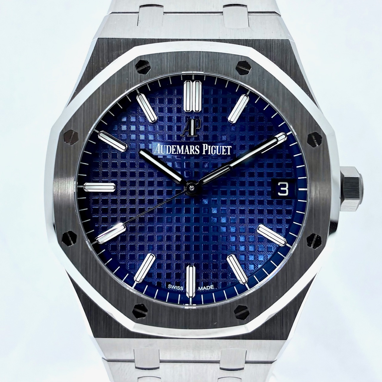 オーデマピゲのアイコンモデル ロイヤルオーク オートマチックの41mmから人気のブルーダイヤルモデルです。