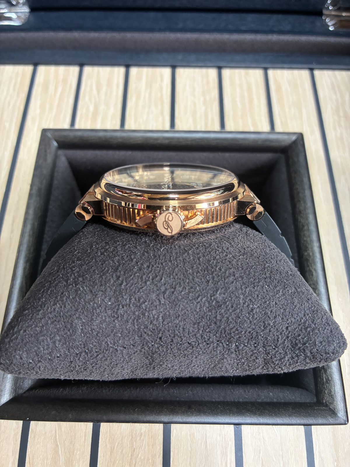 WG✖️レザーにギョーシェ文字盤!シンプルそうで存在感抜群です。