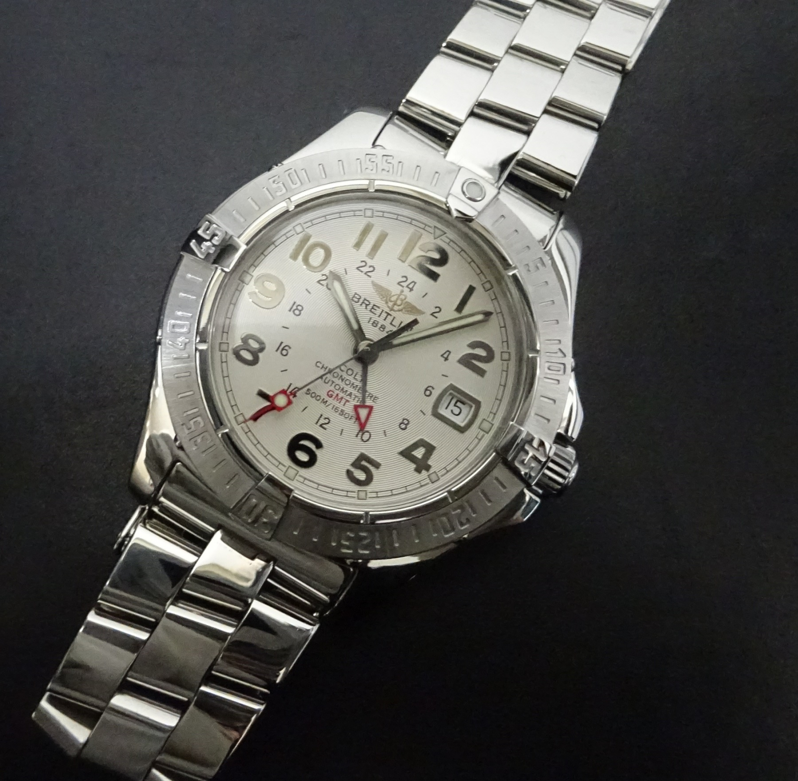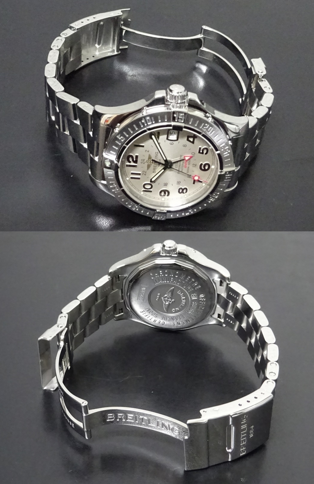 2024年6月OH・仕上済 500m防水 BREITLING ブライトリング エアロマリン コルト GMT A32350 自動巻 シルバー 良品 メンズ 本物