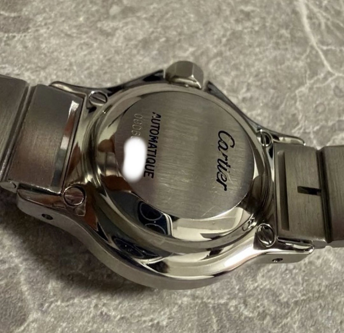 8角形のベゼルが印象的で、クラシカルなダイアル、美しいブルースチール針、スポーティさの中にカルティエらしさを感じさせる名作です。