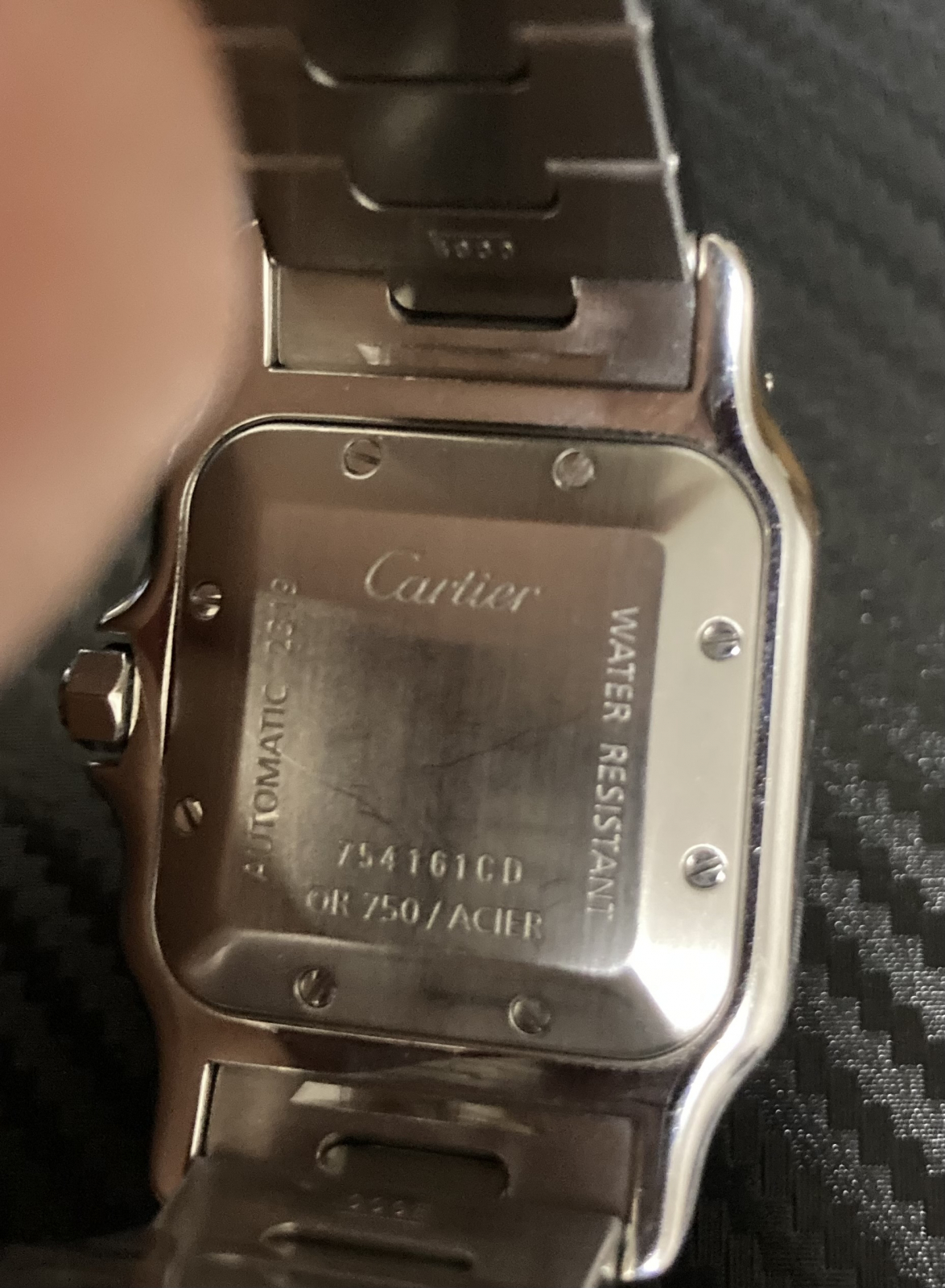 竜頭の石?が少し欠けています。ぱっと見ではわからないですが気になる方はカルティエにて交換をお勧めします。