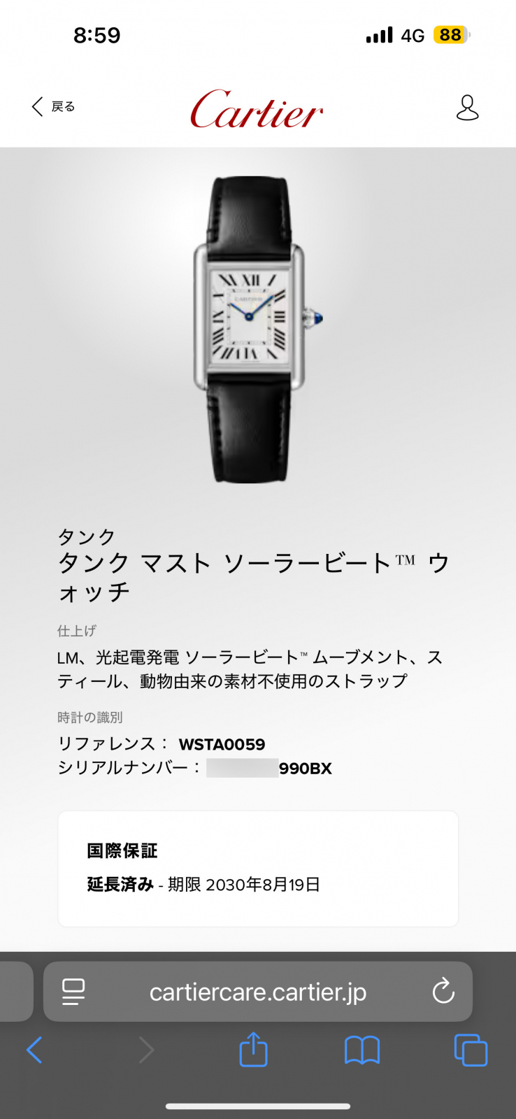 カルティエ タンク マスト ソーラービート LM 延長保証済 WSTA0059