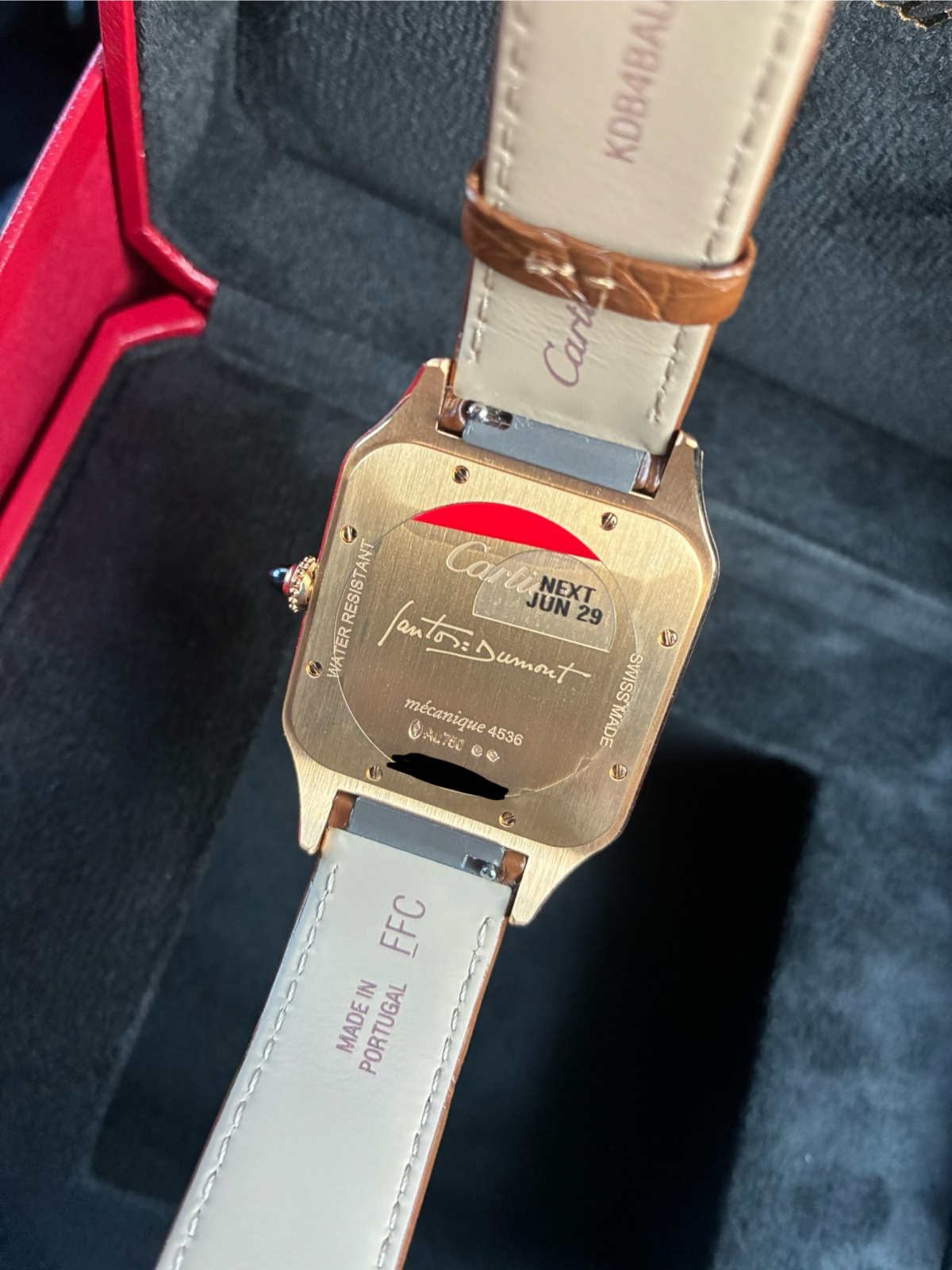 ケースバックにアルベルト・サントス=デュモンが手書きしたサインのエングレービング