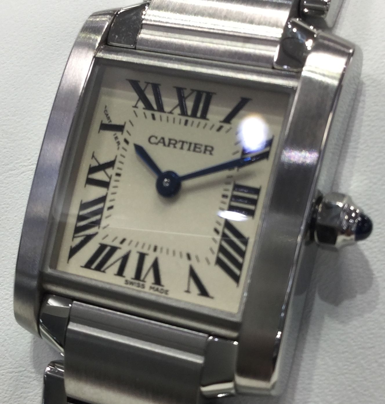 ・カルティエの定番モデル タンクフランセーズSM レディース W51008Q3が入荷致しました。上品で優雅なモデルで高い支持を得ているカルティエの定番モデルで非常に人気の高いモデルです。文字盤は定番カラーのシル文字盤となっております。弊社提携工房にて外装仕上げ済みの美品となっております。お求めやすい価格となっておりますのでこの機会に是非ご検討下さい。