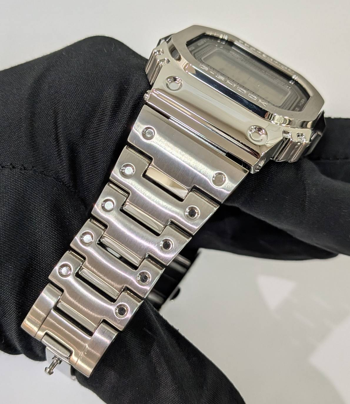 定番の八角系ベゼルにメタル感たっぷりのシルバー素材。大人気のDW-5600シリーズですが時計の機能はないので注意を👌