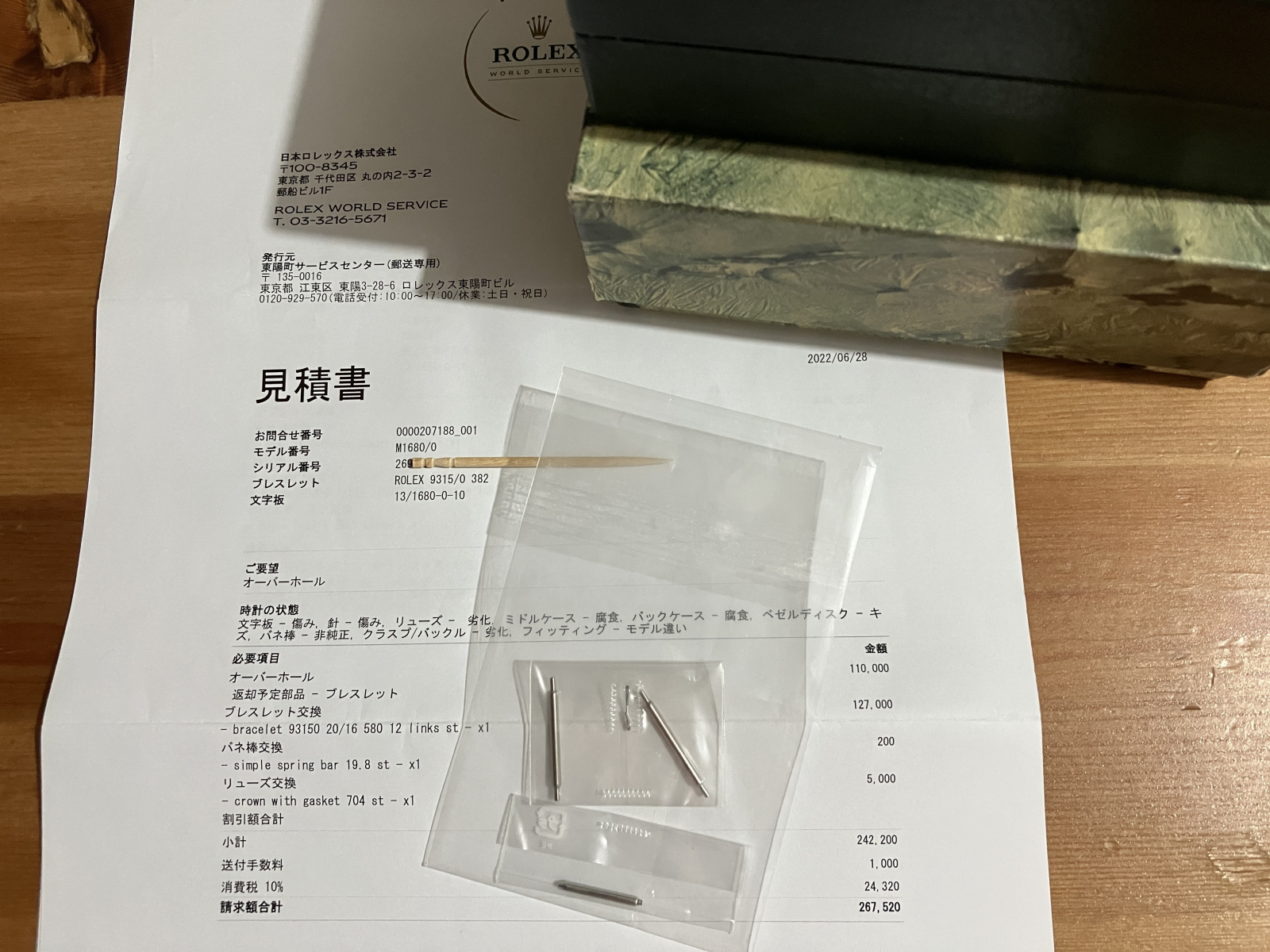 ボックス 日本ロレックスOH見積書