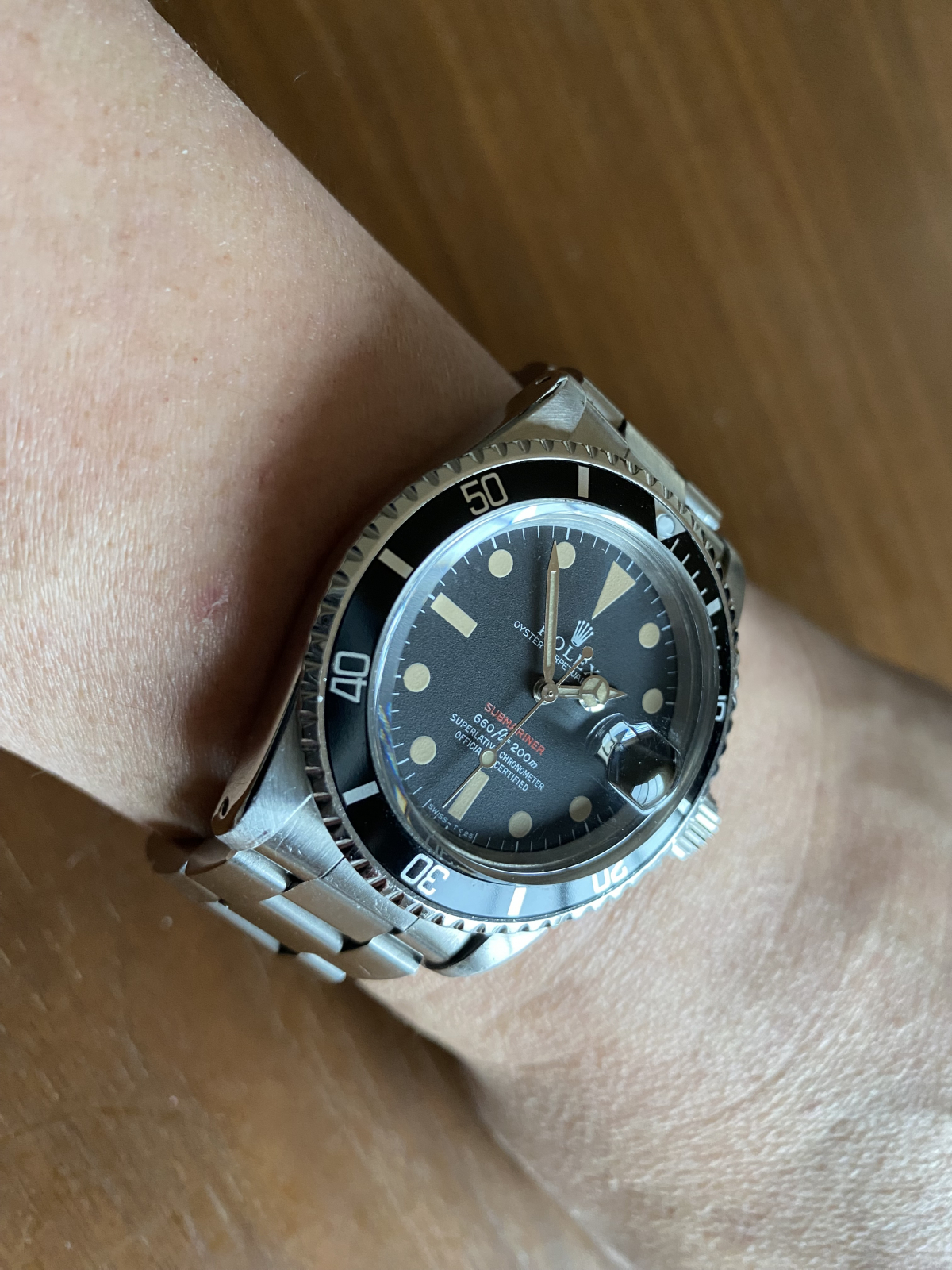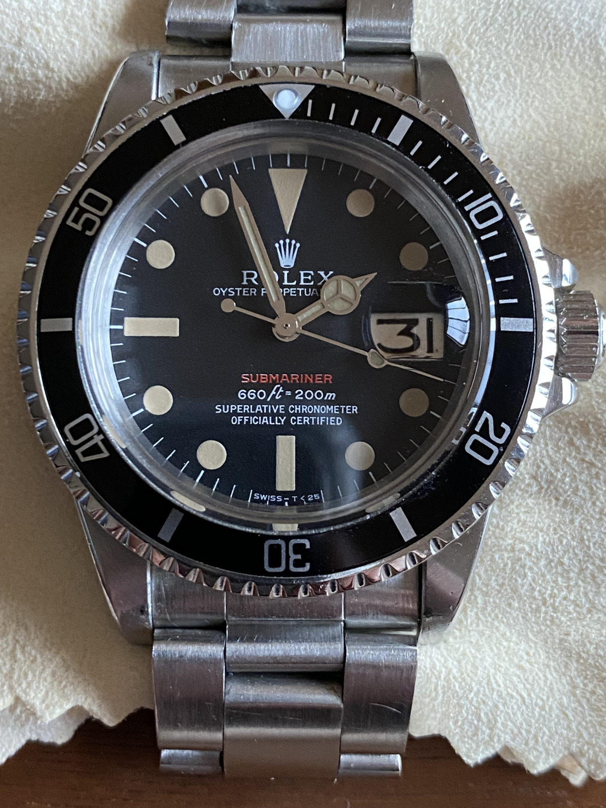 ご覧頂き有難う御座います。71年式、31番台の赤サブマークⅣです。O/H時に針をインデックスに合わせて塗り直しました。ルミナスはルミノバ風防含め全てロレックス 純正部品です。ブレスは93150です。交換目的で日ロレに見積り依頼しましたが、交換していません。購入目的で無い質問はご遠慮下さい。すり替え防止の為NCNRでお願い致します。