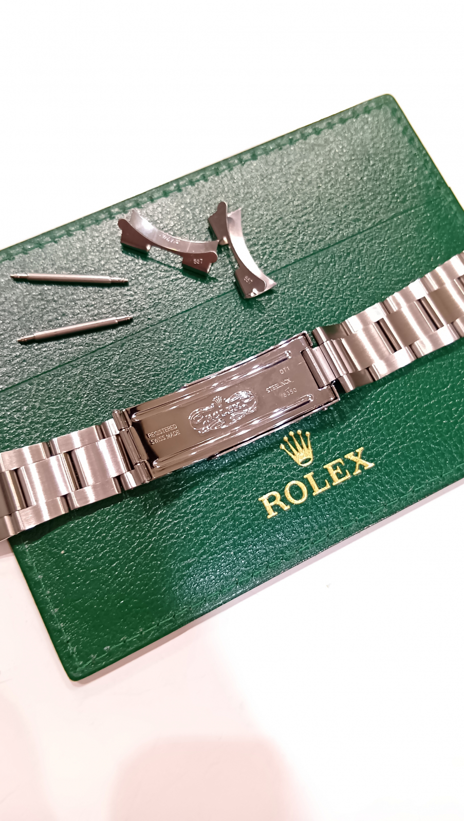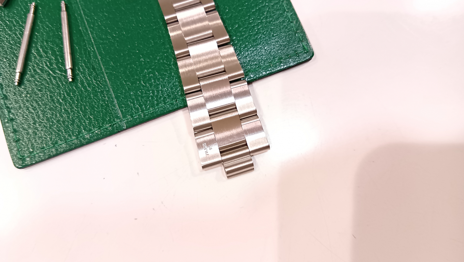 耐久性に優れる無垢タイプコマで構成されスポーツモデルに数多く搭載されている屈強なブレスレット