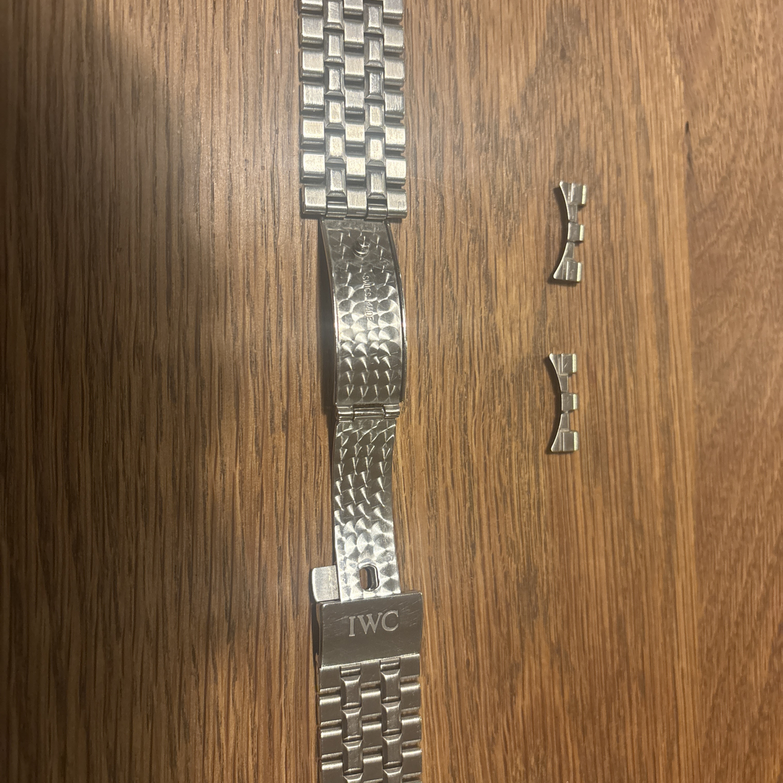 時計の売却によりIWC純正ステンレスブレスを出品致します。使用感と使用に伴う傷は有りますが目立つ傷は有りません。流通量の少ない希少品となります。フリーガー系にも使えると思いますが、フラッシュフィットが合うかは分かり兼ねます。お探しの方いかがでしょうか。よろしくお願いします。