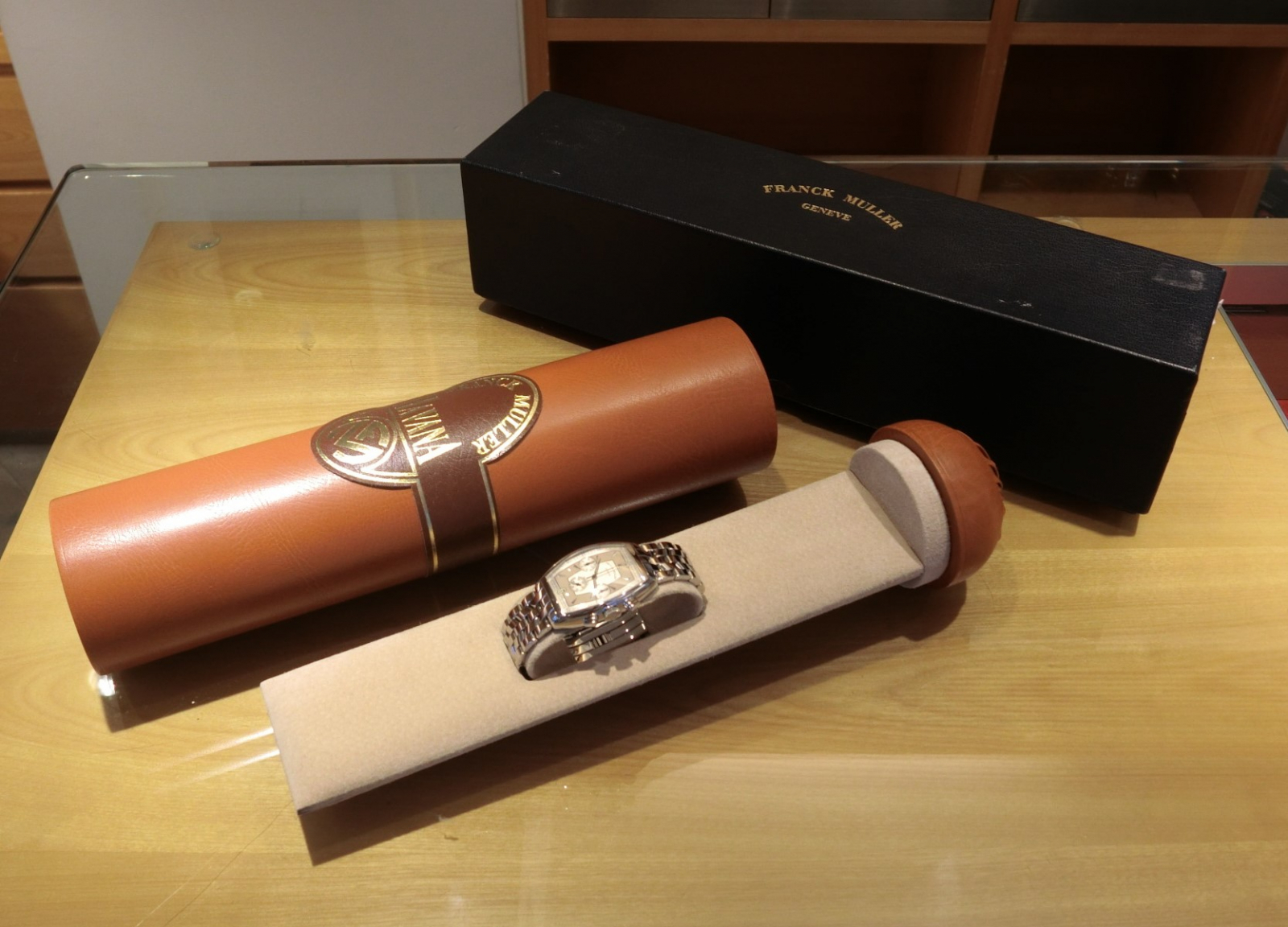 フランクミュラー初期の珍しいモデルで、シガーの形をイメージしたボックスにも当時の拘りが感じられます。
