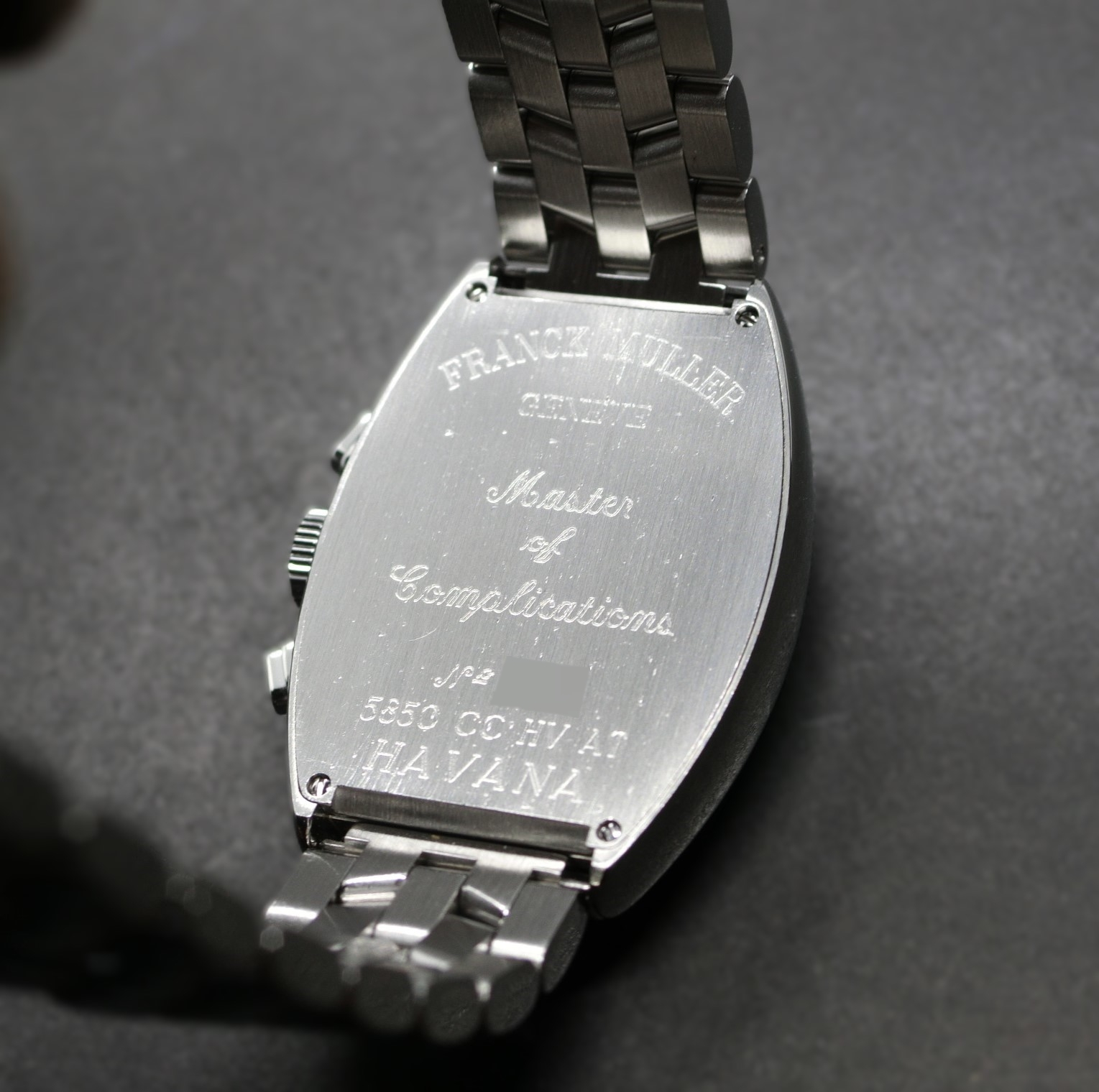 1990年代後半から2000年代半ばにかけて製造されたこのモデルは、フランク・ミュラーを代表するクロノグラフのひとつです。