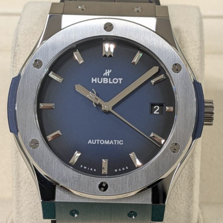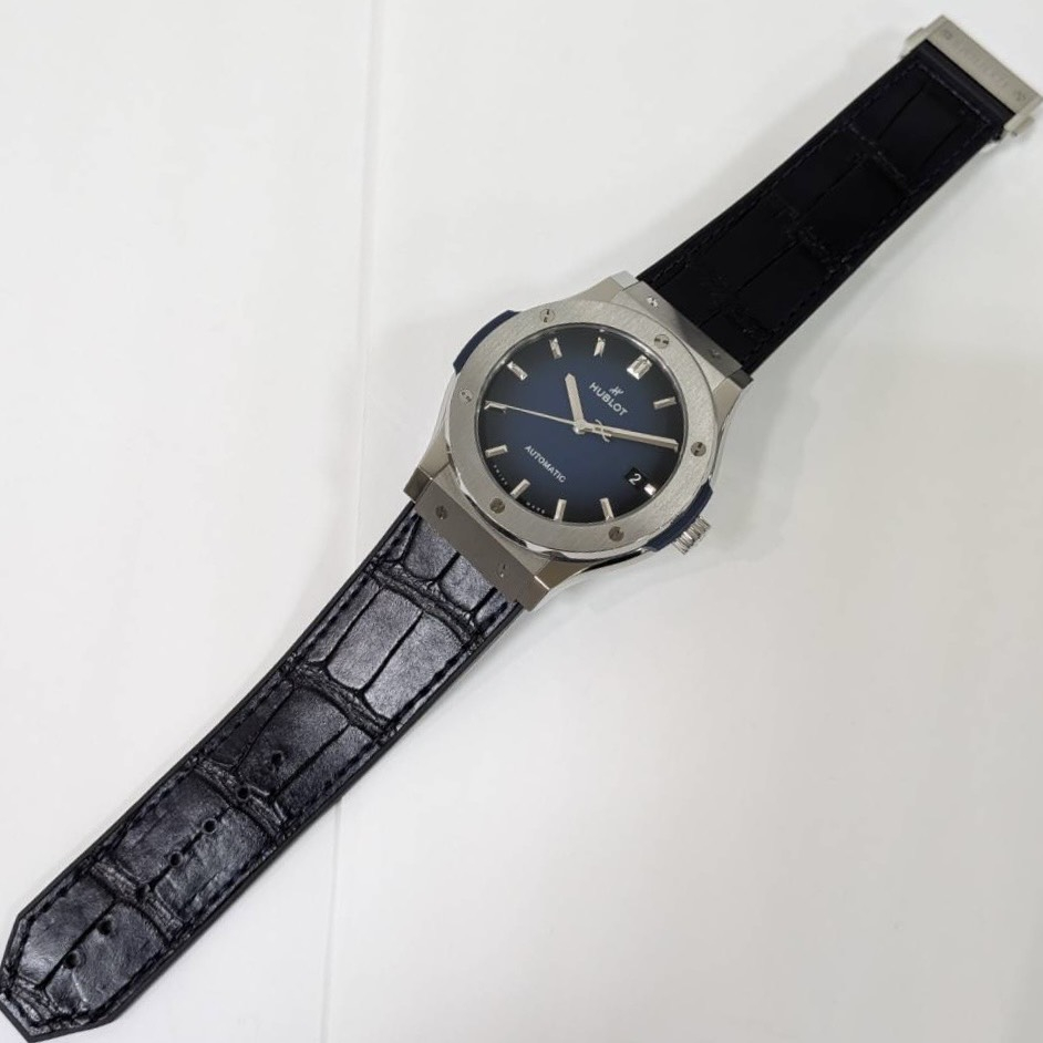 ウブロ クラシックフュージョン 日本限定 511.NX.6670.LR.JPN ブルー文字盤 チタニウム 中古美品 自動巻 12040128