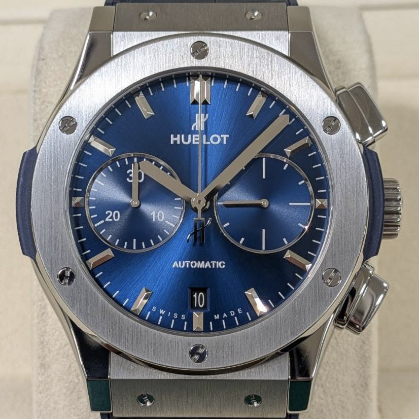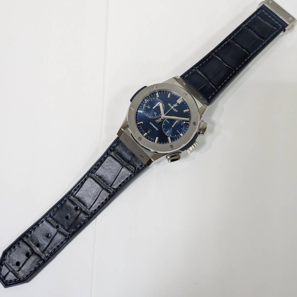 ウブロ クラシックフュージョン クロノグラフ 521.NX.7170.LR ブルー文字盤 チタニウム 中古品 自動巻 12039634