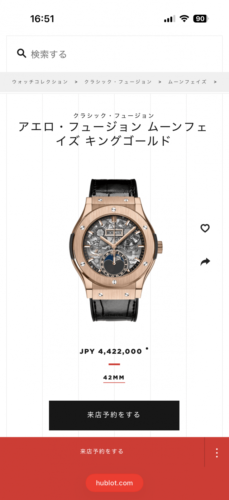 ムーンフェイズがアクセントになり、ウブロらしい機械的なデザインがカッコいいです。