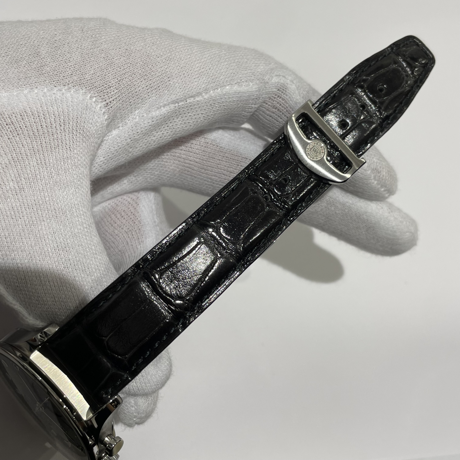 鏡面部分に保管スレ程度の微細なスレと、革ベルト内側に保管していた際に出来たとされる細かいシワがございますが、使用感も少ない極美品のお品物です。