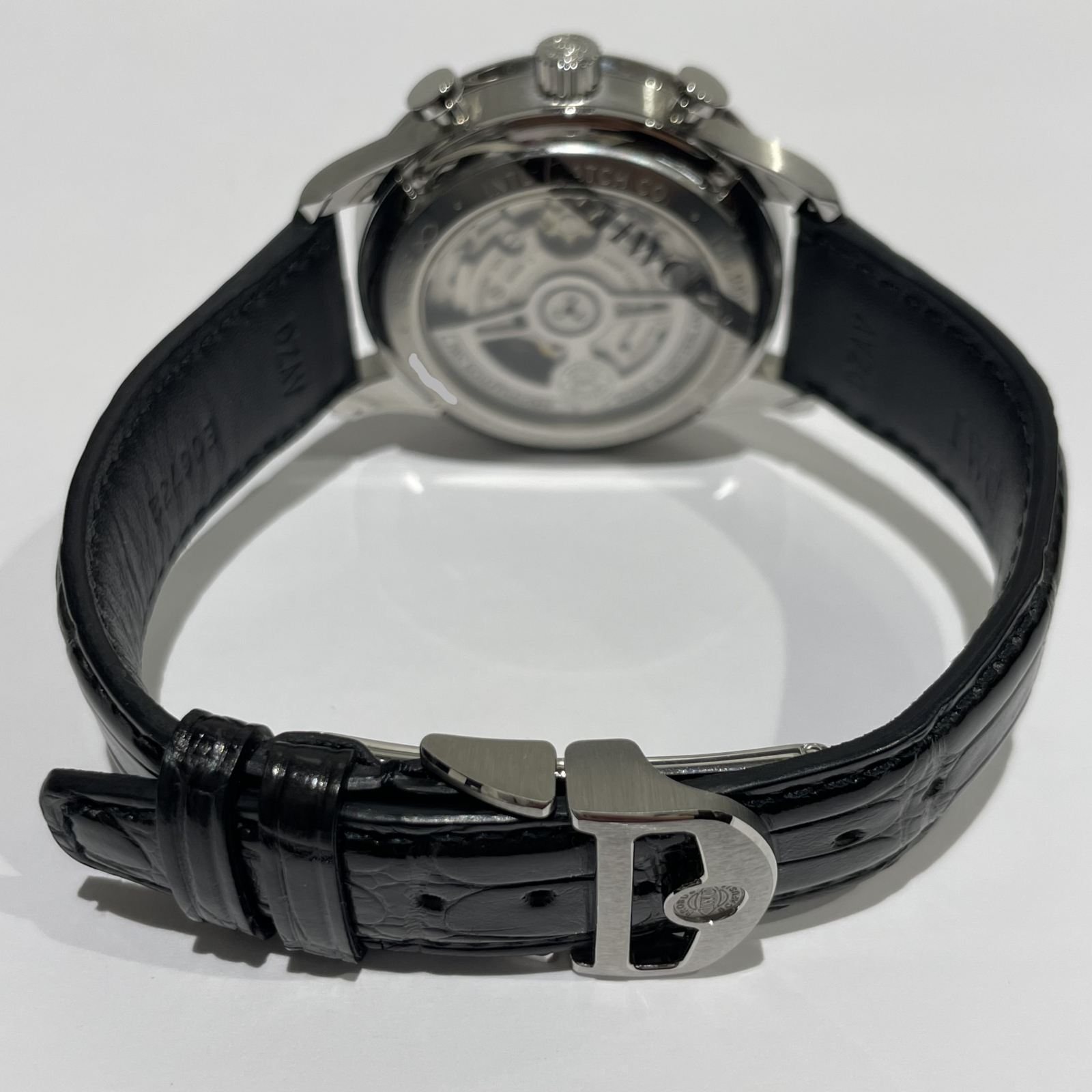 1998年に登場したポルトギーゼは登場以降IWCの中でもアイコニックとされ、今なお絶大な人気を博しております。黒文字盤に上下に配置されたインダイヤルは、芸術的で視認性にも優れております。