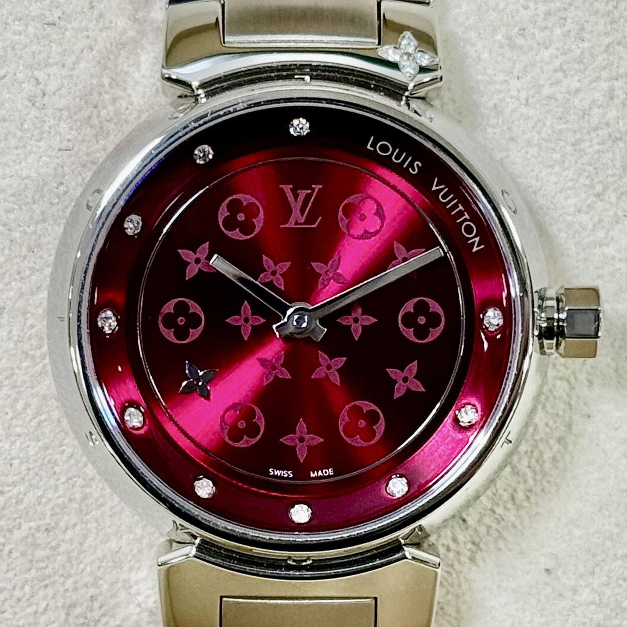 ルイヴィトン タンブール ディスクPM Q12MC パープルレッド×10Pダイヤモンド文字盤 クオーツ 12002141