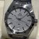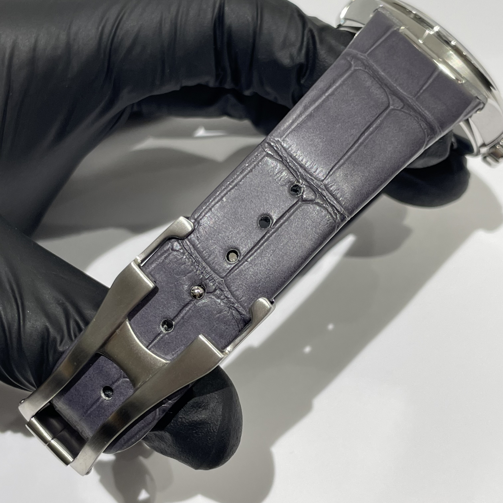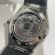 深みのあるグレーのシルクパターン文字盤で落ち着きのあるレザーストラップが装着されております。