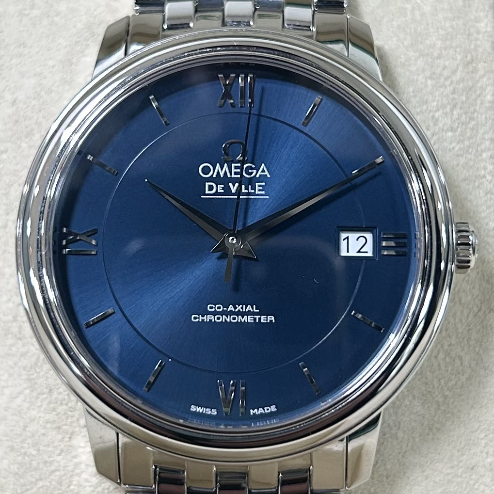 オメガ デヴィル プレステージ 424.10.37.20.03.001 ブルー文字盤 自動巻 中古品 12044383