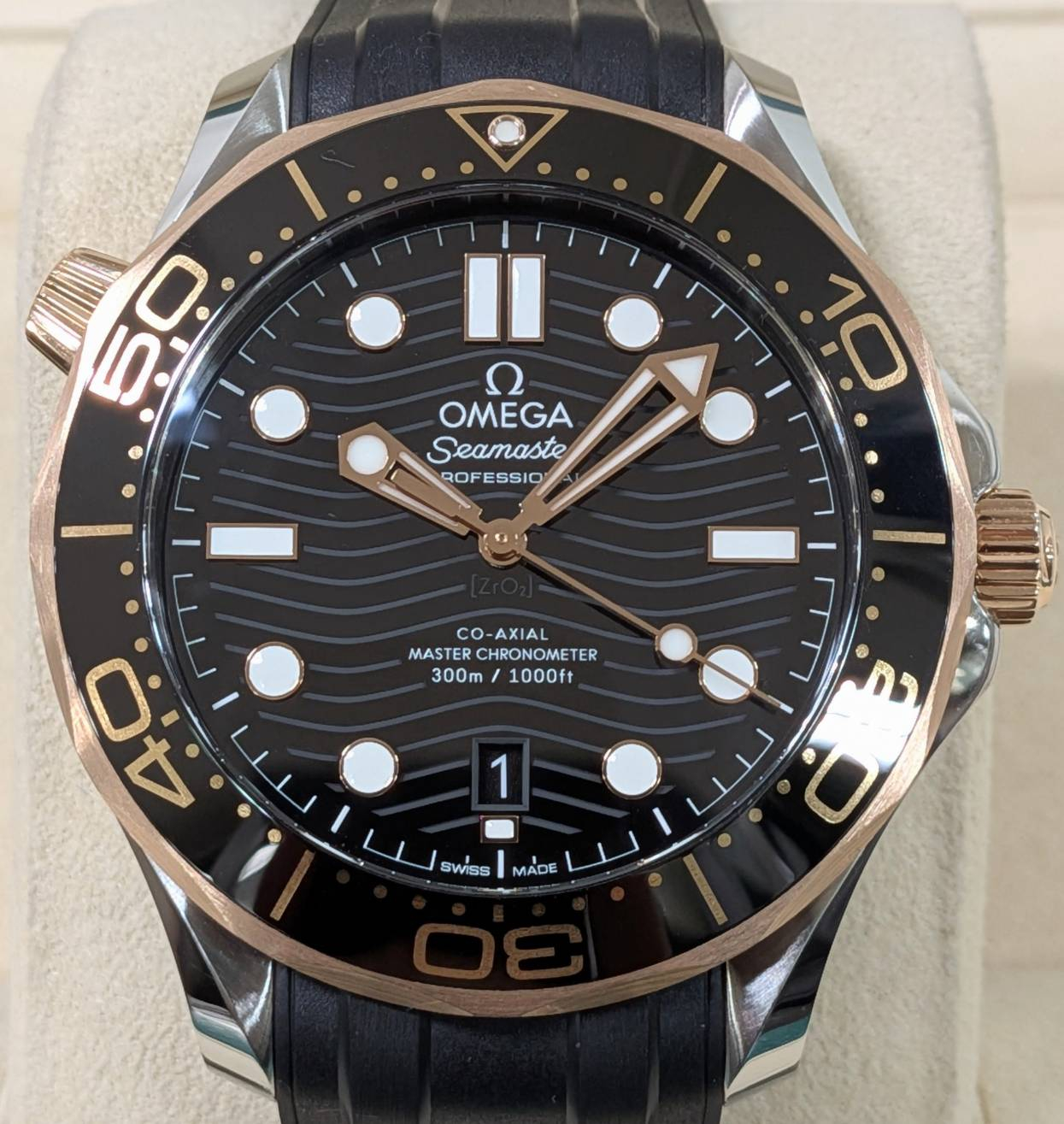 オメガ シーマスター ダイバー300m 210.22.42.20.01.002 黒文字盤 セドナゴールド/ステンレス ラバーベルト 自動巻 12046890