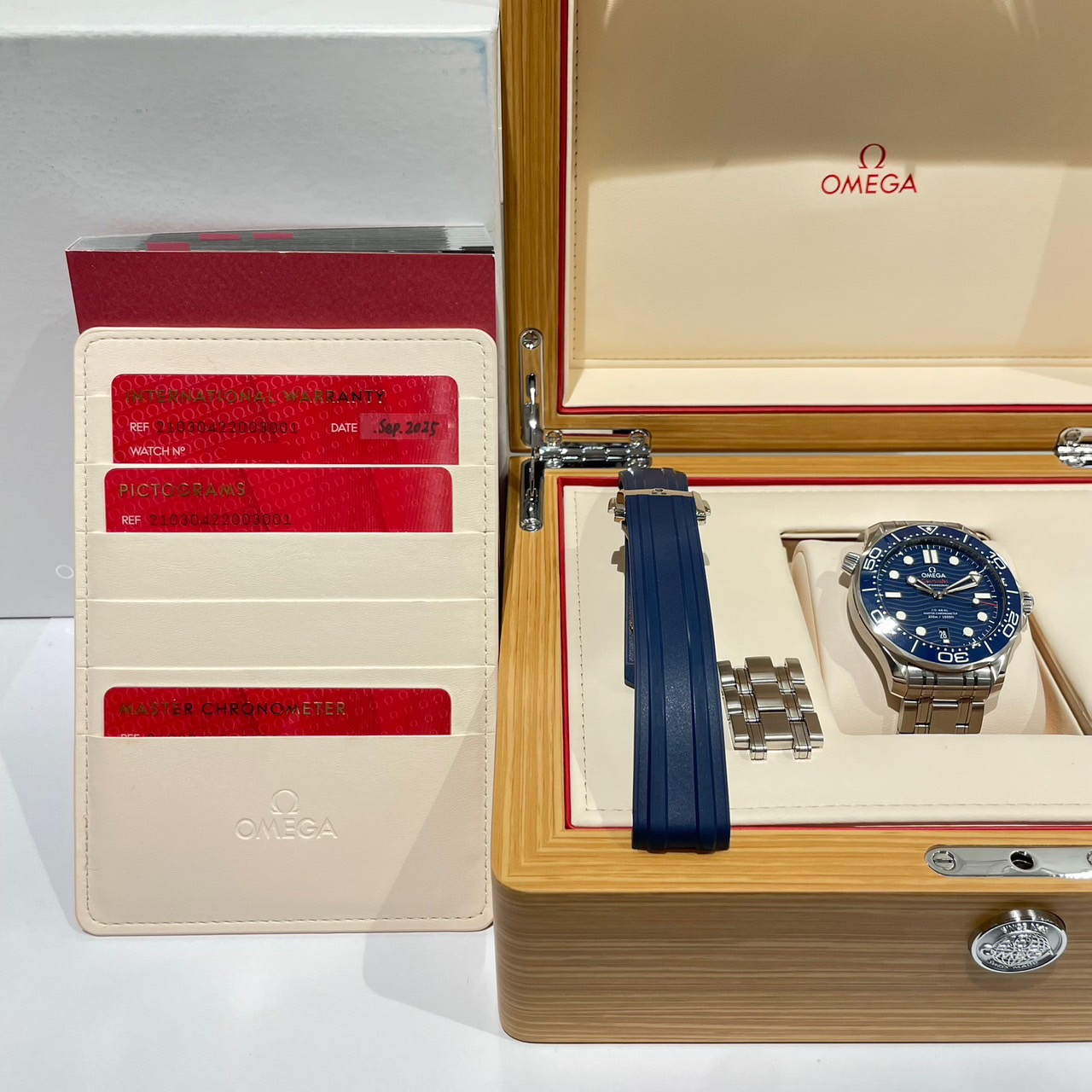 箱・保証書(正規:2025年9月印)・ピクトグラムカード・クロノメーターカード・取扱説明書・タグ・ラバーベルト・コマ×3
