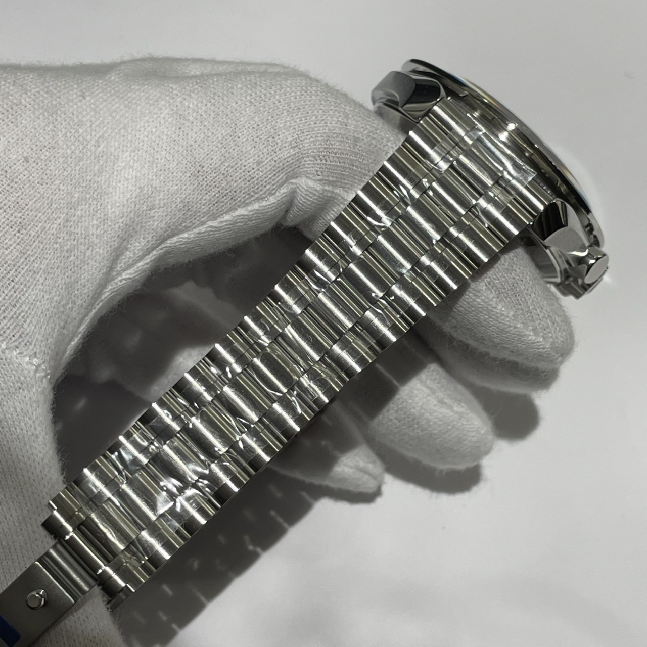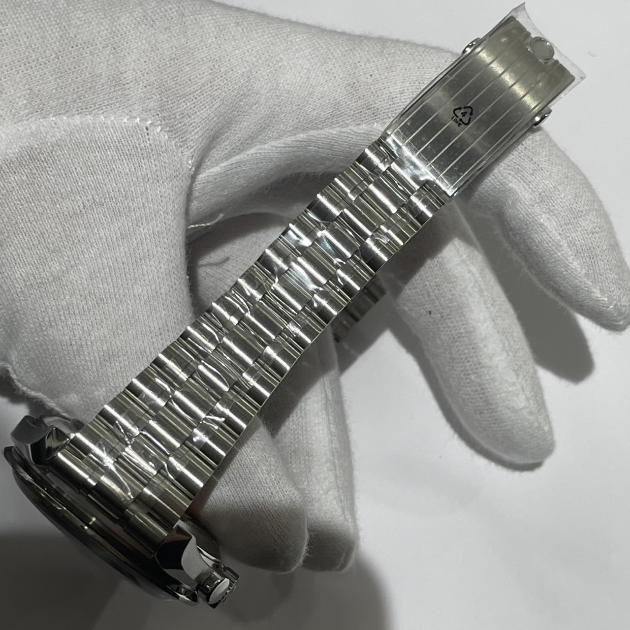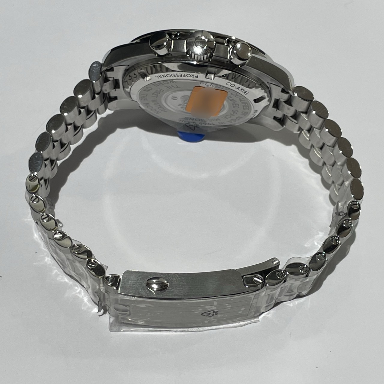 裏蓋・バックル・ブレス等にシールが残った未使用品のお品物です。