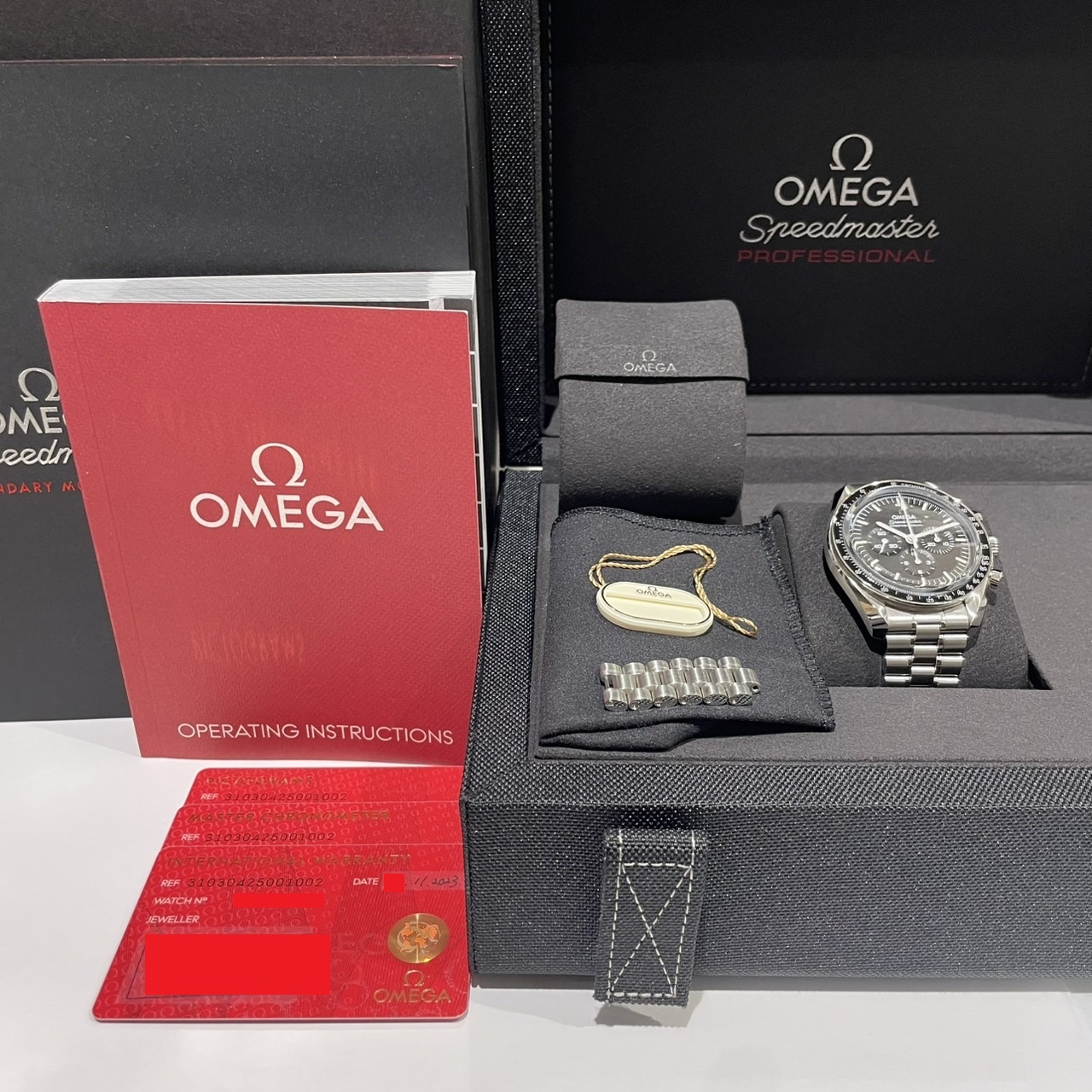 箱・保証書(並行:2023年11月印)・取扱説明書・ピクトグラム・クロノメーターカード・ホワイトタグ・コマ×6