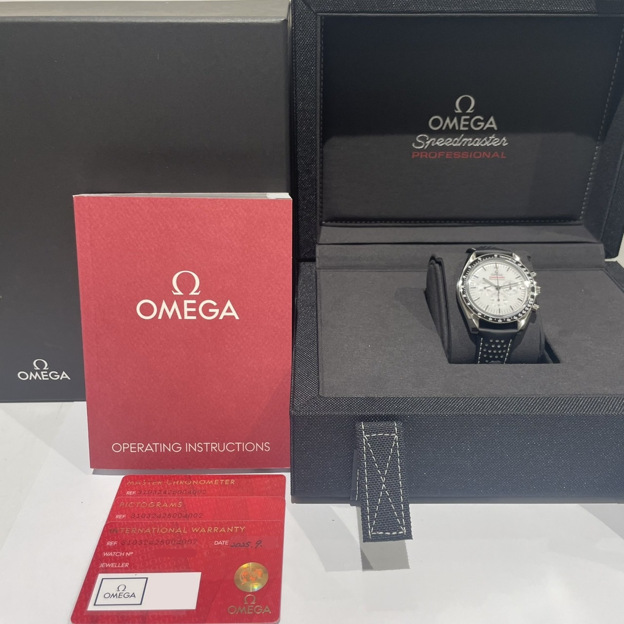 箱・保証書(正規:2025年9月印)・取扱説明書・ピクトグラム・クロノメーターカード