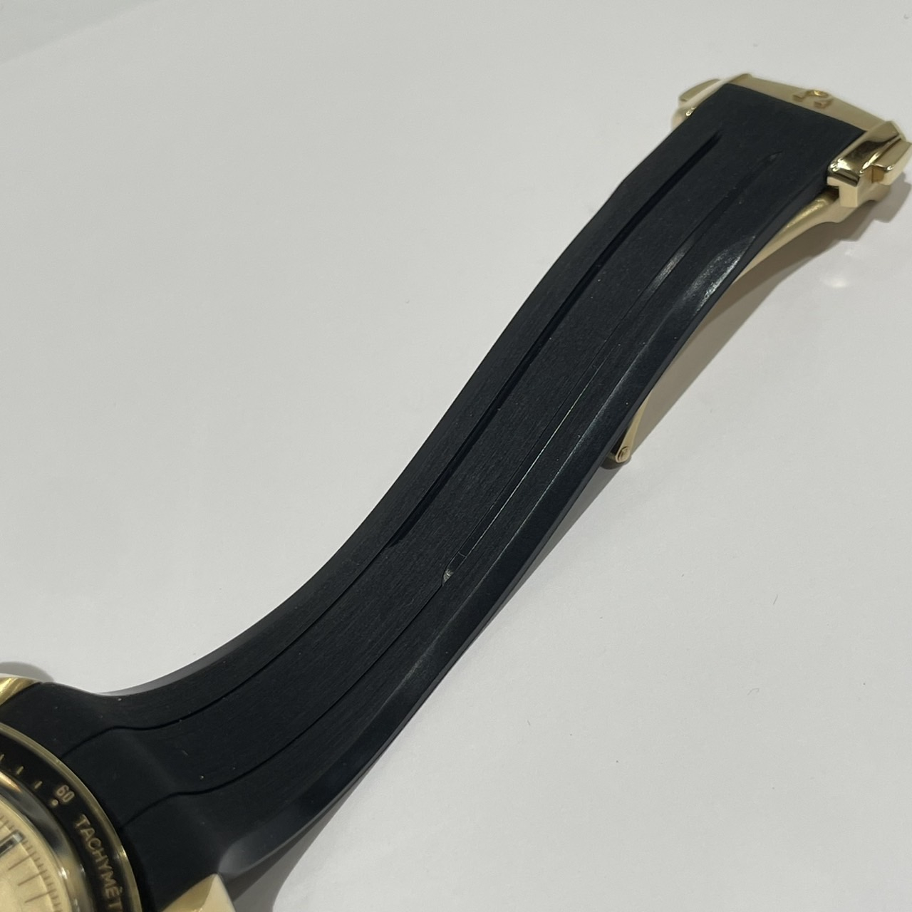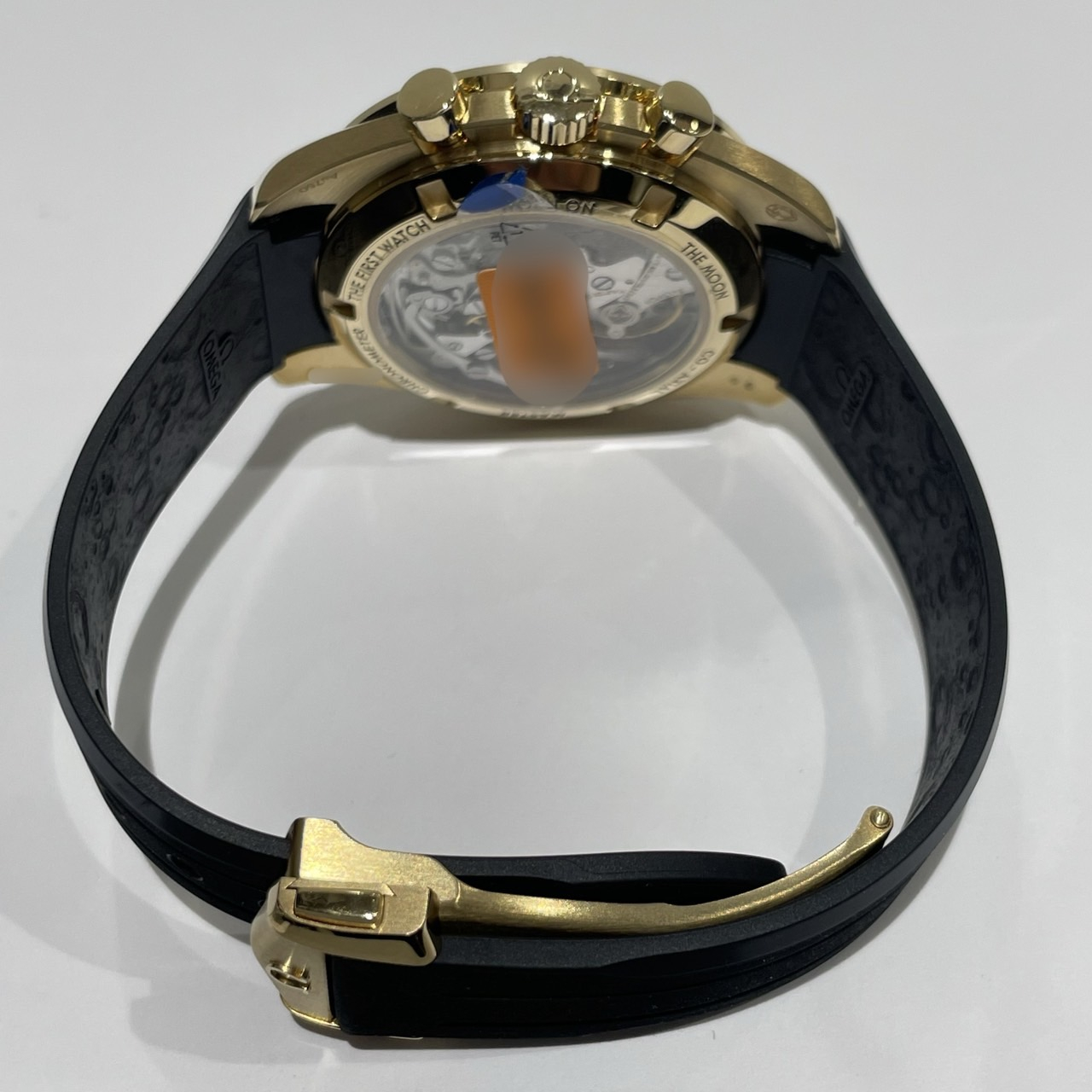 またブラックのラバーストラップの裏面には月面のレリーフが施されており特別間のあるデザインです。なかなか入荷数のないお品物ですので是非ご検討くださいませ。