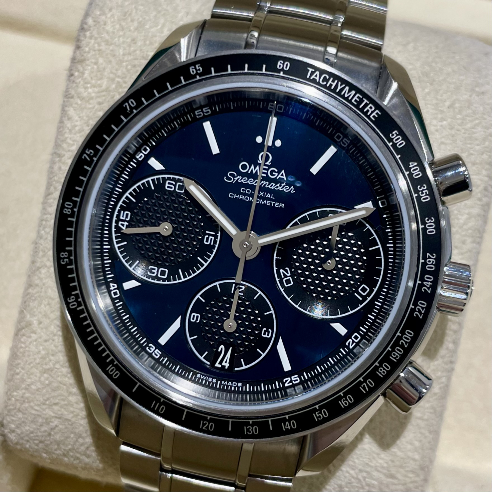オメガ スピードマスター レーシング 326.30.40.50.03.001 ブルー×黒目文字盤 自動巻き 極美品 11957841