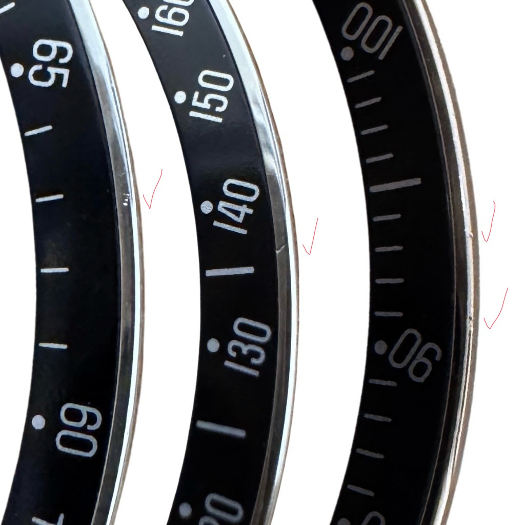 • 聞き方を変えます、画像5で、タキメーター面の70 表記の少し右上に何か付着のように見える箇所は、傷ですか、撮影時の単なるホコリの付着ですか?
