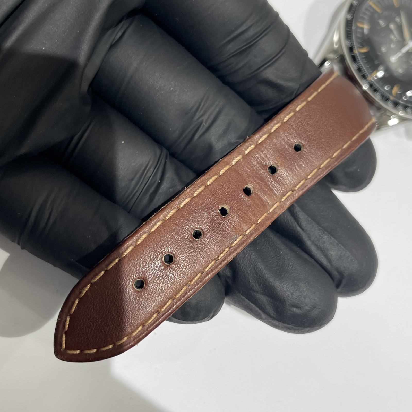 裏蓋に使用に伴う軽いスレキズ、革ベルトに若干の使用感がございますがその他特筆すべき点のない美品のお品物です。