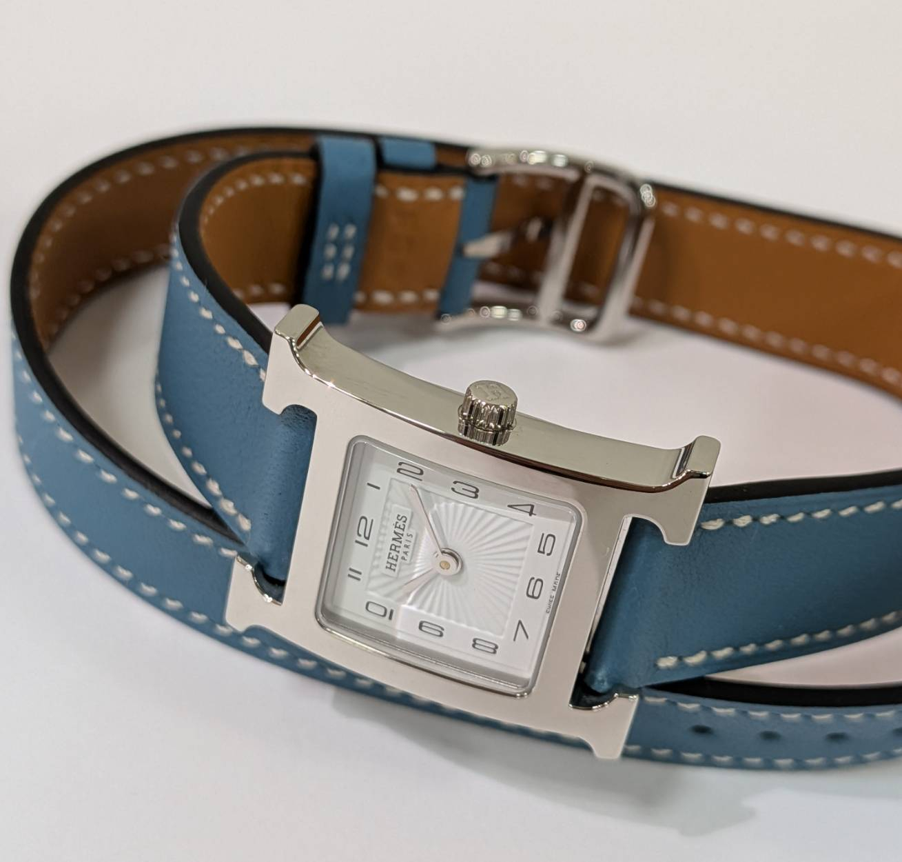 エルメス Hウォッチ HH1.210 白文字盤 スイフト クオーツ 美品 11959095