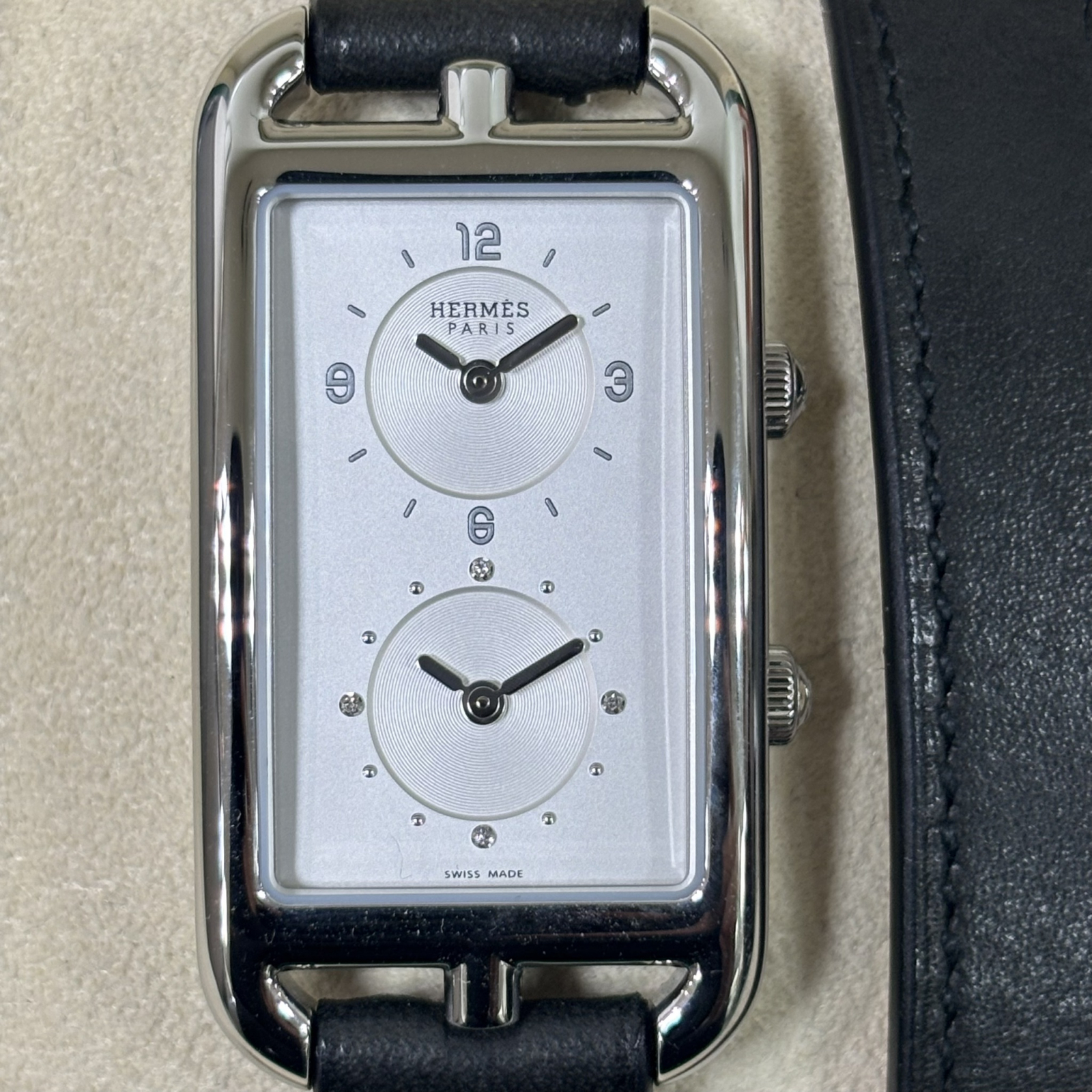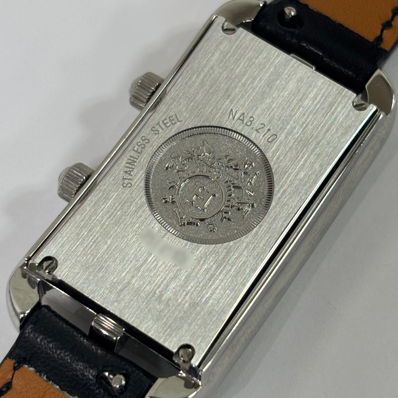 エルメス ナタンケット デュアルタイム NA3.210 黒 Y刻印 4Pダイヤ/シルバー文字盤 クオーツ 中古美品 12073145