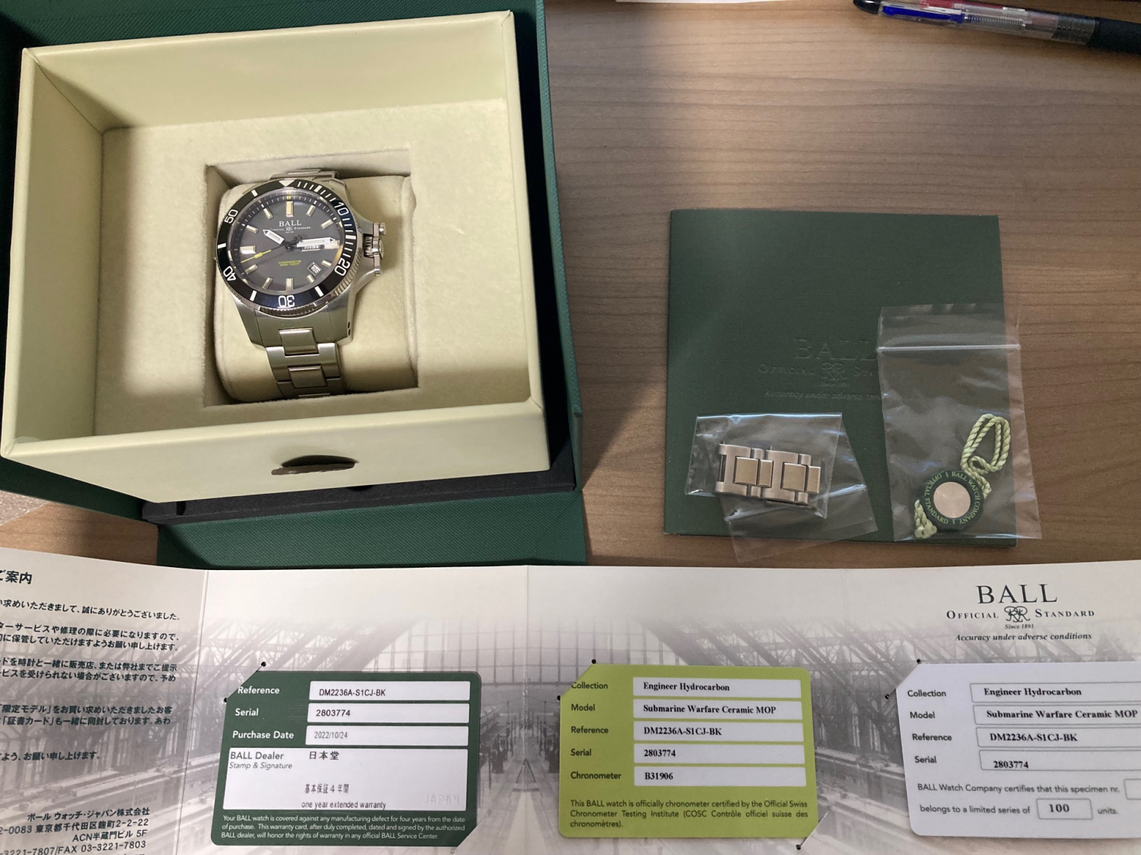【期間限定出品特価】ボールウォッチ☆サブマリン ウォーフェア ブラックMOP☆日本限定100本☆中古美品