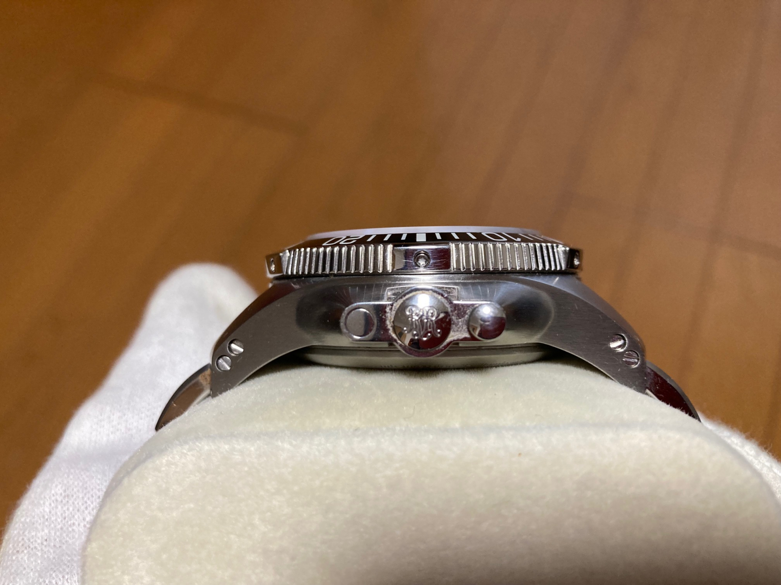 通常使用に伴う細かなスレ等は見られますが、使用機会も少なかったので特筆すべき深く目立ったキズやスレは無く一般的な中古時計としては美品の部類かと思います。