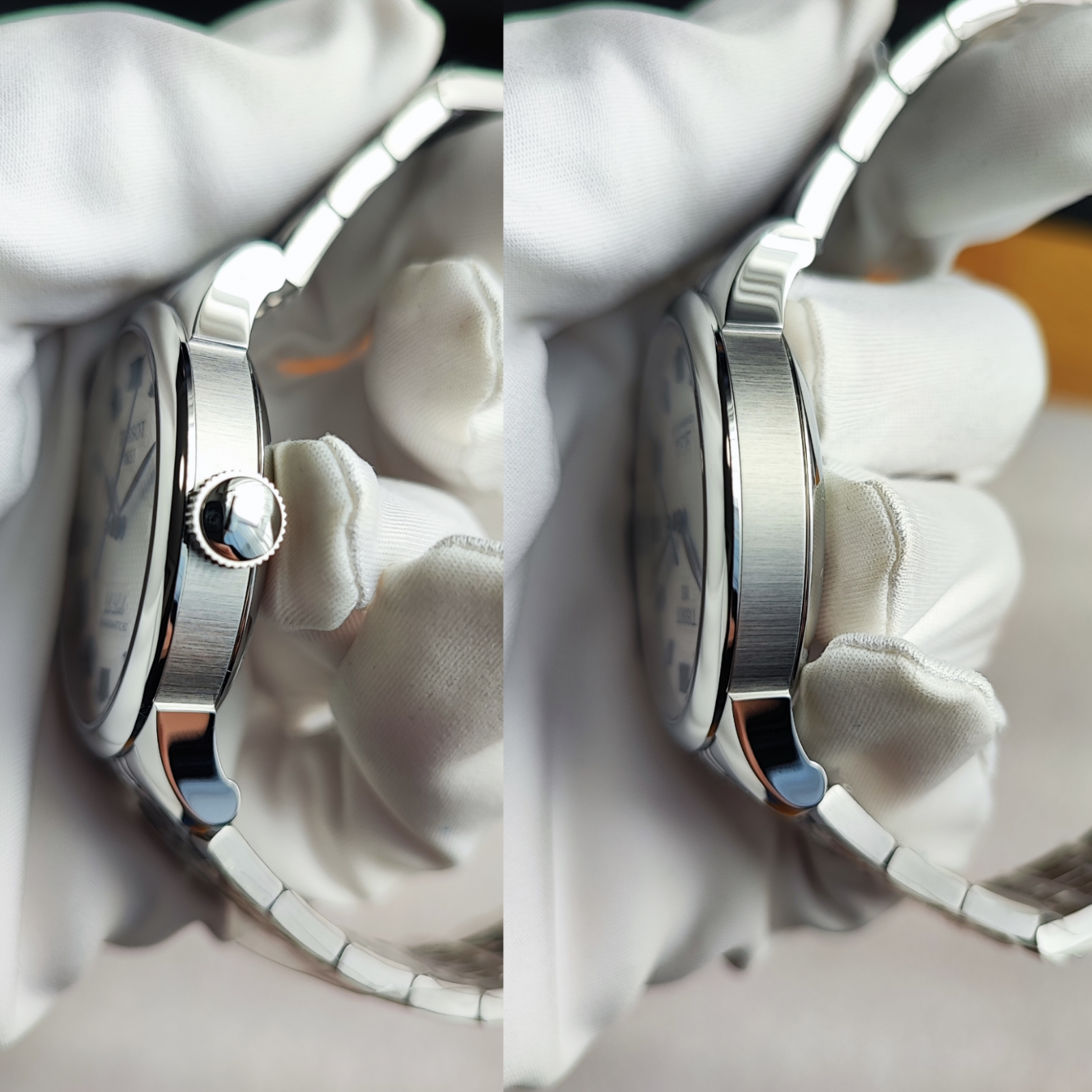 39mmのケースに大きめの針やインデックス。文字盤はサンレイ仕上げのブルーダイヤルがイケてます✨ブルーの他にブラック、シルバーの文字盤があり、どんなシーンにも合うと思います。