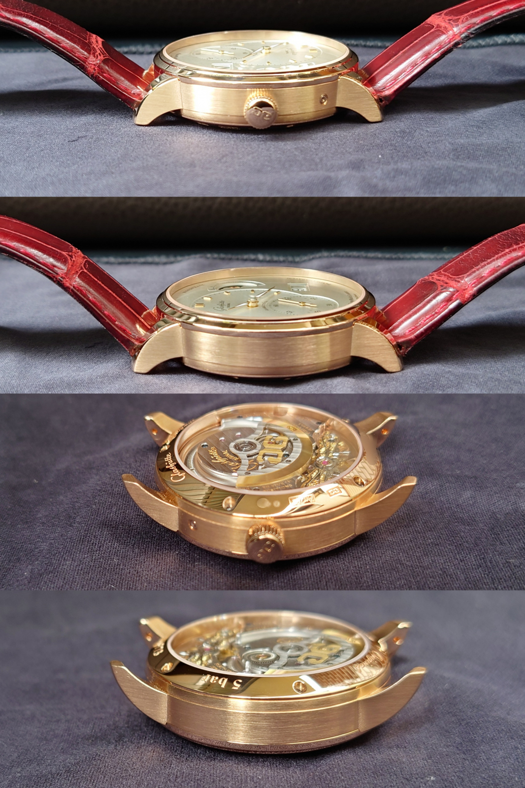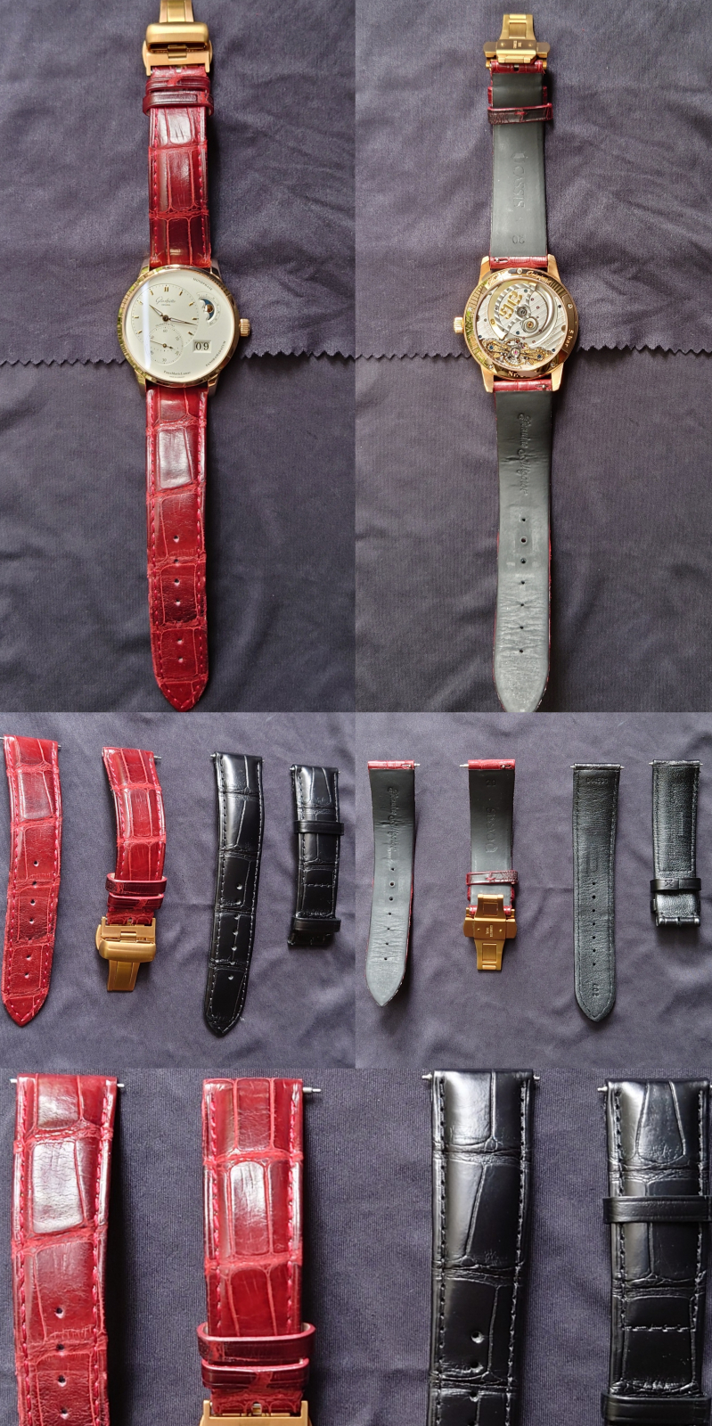 付属品は純正レザーストラップ、純正Dバックル、純正ラバーストラップ(未使用)、サービスワランティー、保証カード、冊子類、箱、ムーンフェイズ調整兼Dバックル用ドライバーピン、現在付いているカシスのストラップとDバックルです。