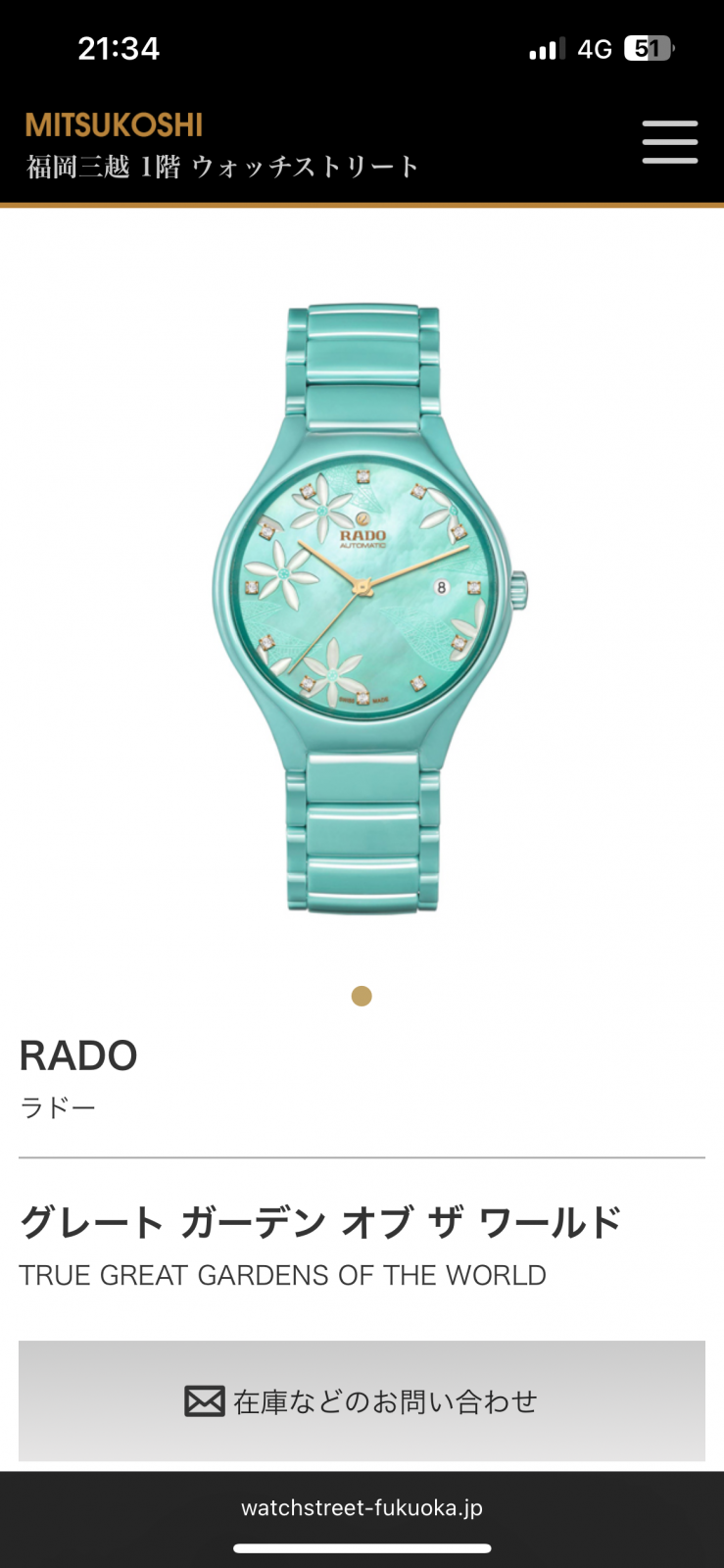 某アイドルがインスタLIVEで着用して話題になったモデルで、恐らく日本だけでなく世界中で完売している時計です。