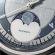 置き時計・掛け時計の時代から継承されているダイアル上のムーンフェイズ表示は、現代の腕時計においてはその機能とともに、目で見て愉しむことができるアクセントとして好まれています。