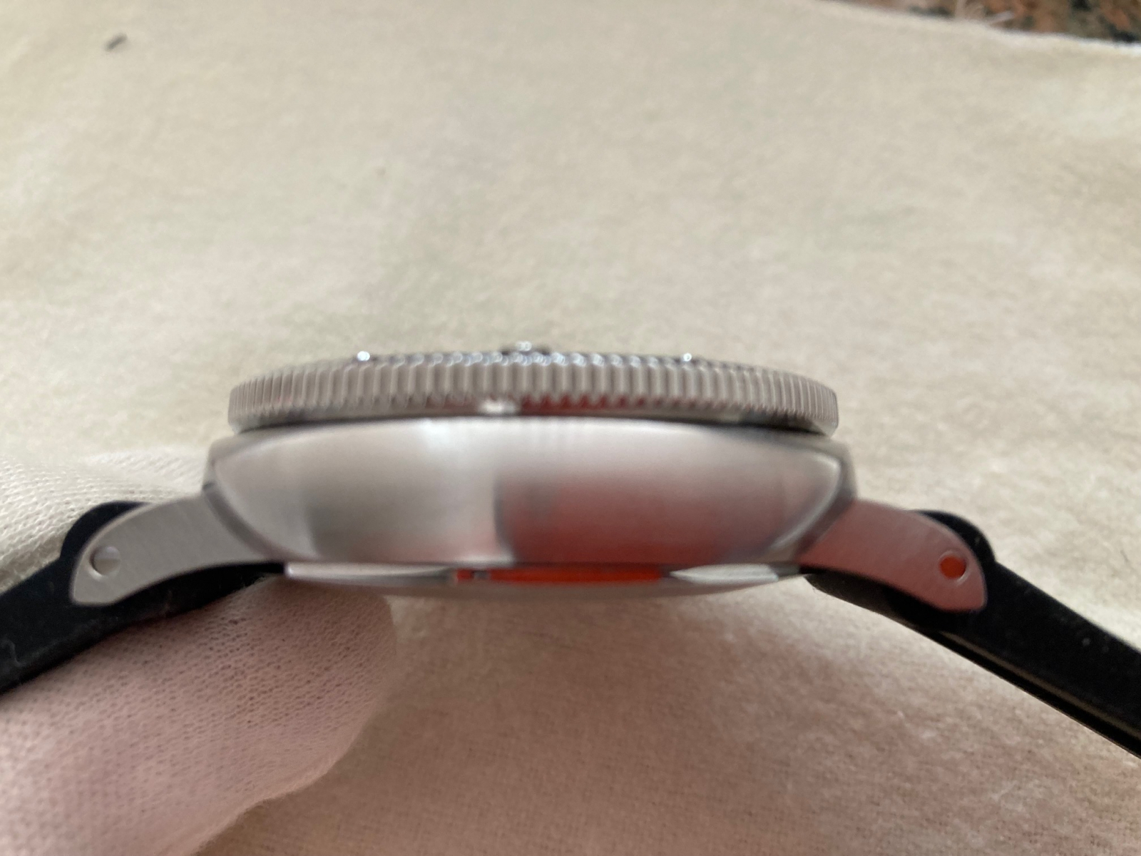 ※ファーストオーナーの方が、好みの問題で通常サブマーシブルに付属しているアコーディオンタイプのラバーベルトからルミノール系に付属のタイプに、またフィッシュテールタイプの型のバックルから画像のタイプに変更されております(当然ですがいずれも正規品です)。