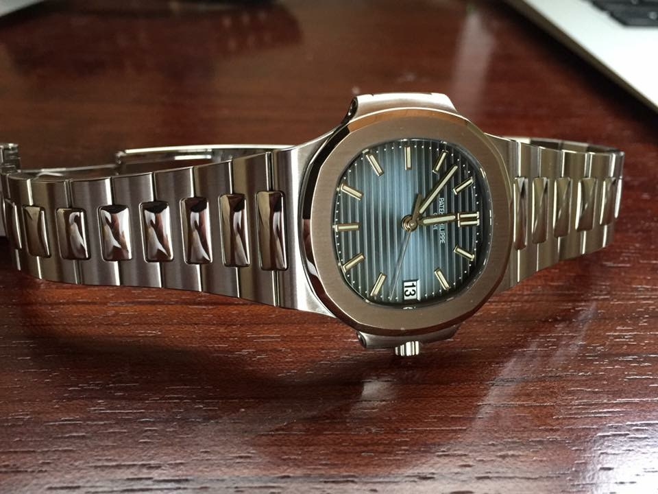 2007年3月30日に福岡の博多大丸のパテック・フィリップ正規取扱店の時計コーナーにパテック・フィリップのノーチラスの 5800/!Aが鎮座していたのを見て思わず衝動買いしたものです。主に連休が続く週末に使用していたこともあるのと、オーバーホール時に軽い磨き仕上げも行なっているので美品といっても良いミントコンディションです。